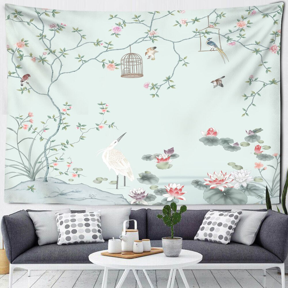 Oil Painting Flowers & Birds Tapestry Wall Hanging Tapis Cloth