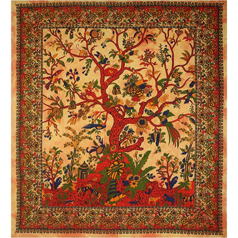 Tapestry Orange Tree of Life Wall Hanging Psychedelic Tapestries Indian Cotton Twin Bedspread Picnic Sheet Wall Decor Blanket Wall Art Hippie Bedroom Decor