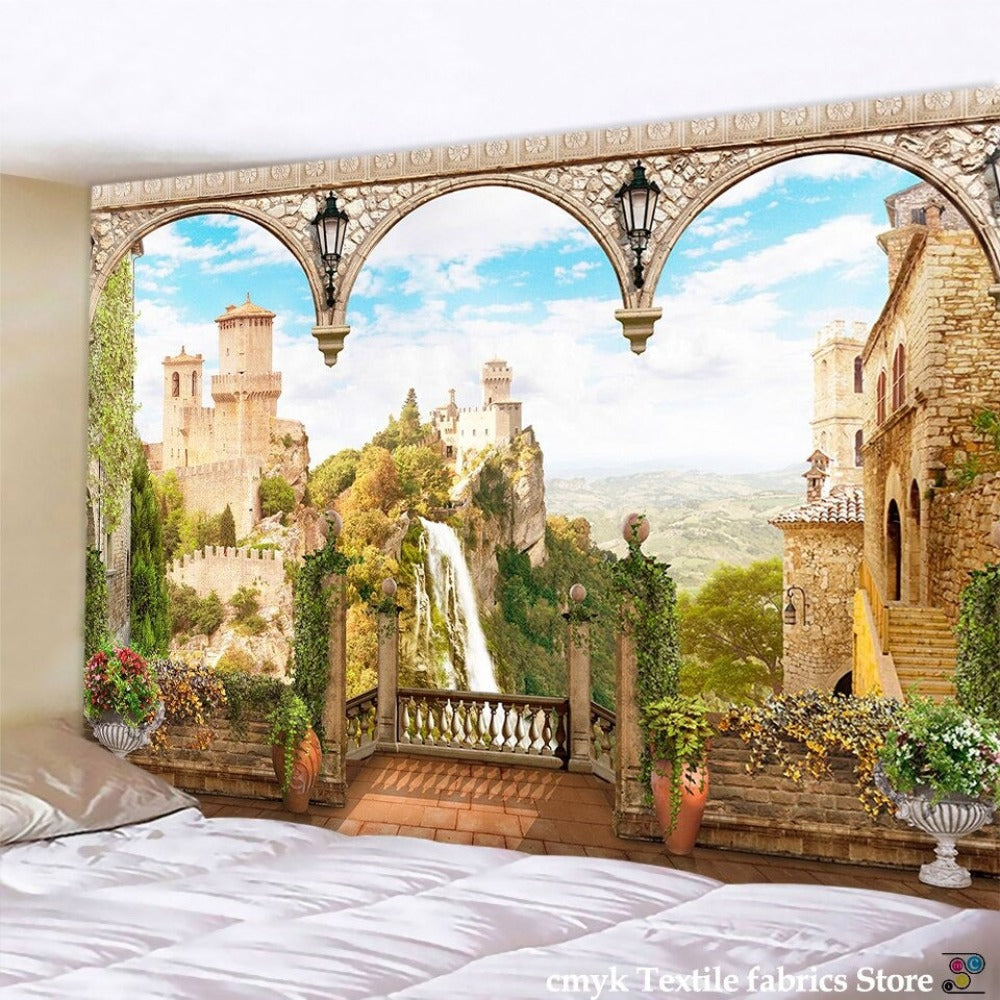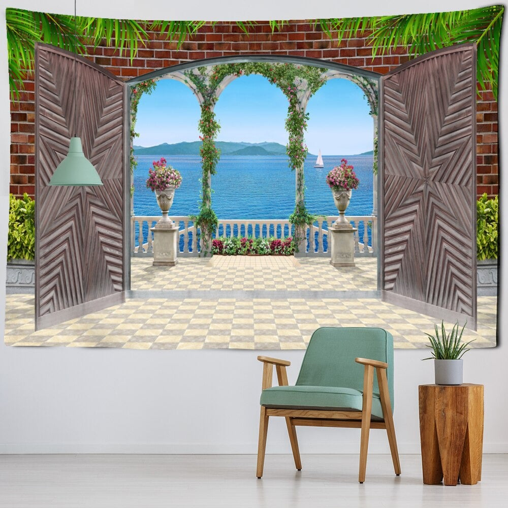 3D Window Scenery Home Decor Tapestry Wall Hanging