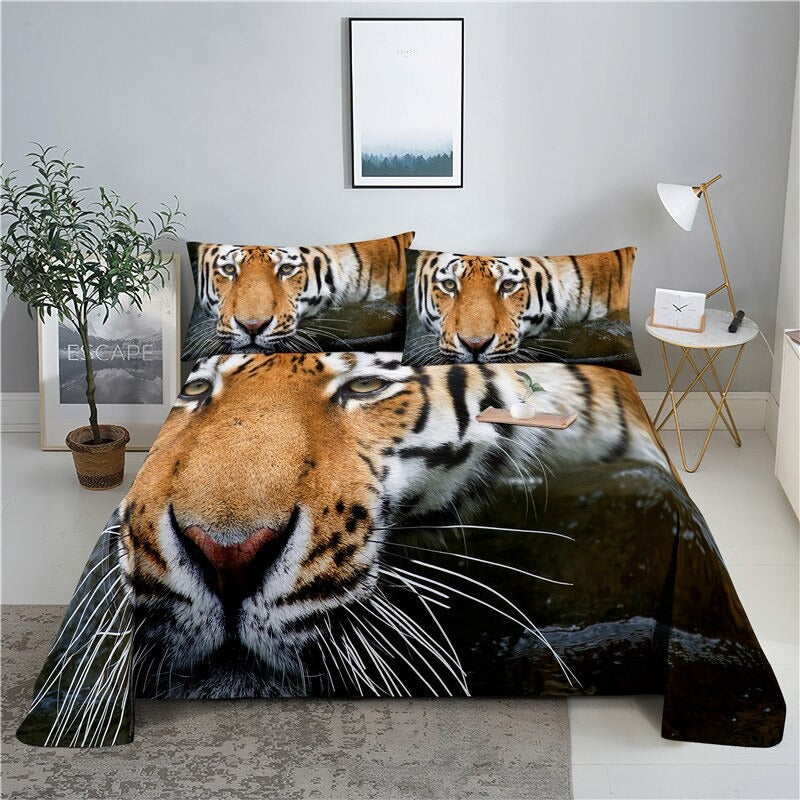 3D Tiger Print Bed Flat Sheet Set