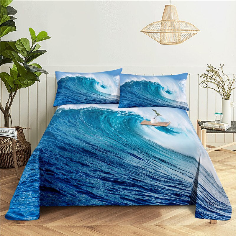 3 Pcs Coastline Digital Printed Polyester Fitted Sheet Set