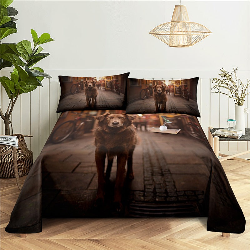 3 Pcs Animated Animal Digital Printed Polyester Fitted Bed Sheet Set