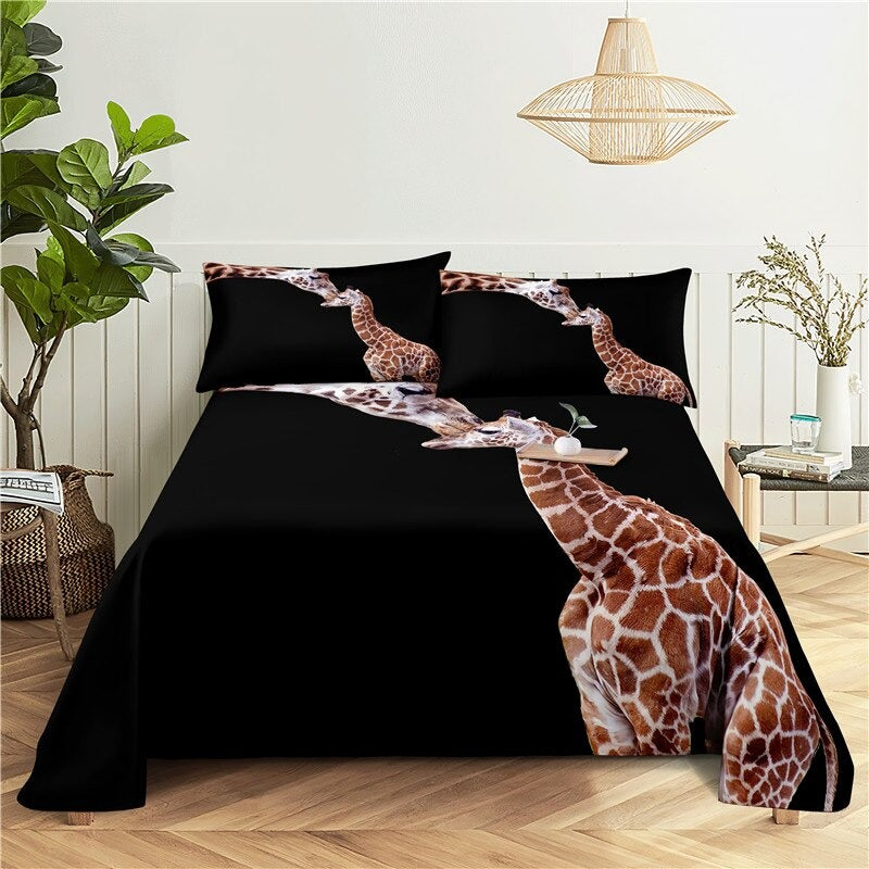 3 Pcs Cartoon Animal Digital Printed Polyester Fitted Sheet Set