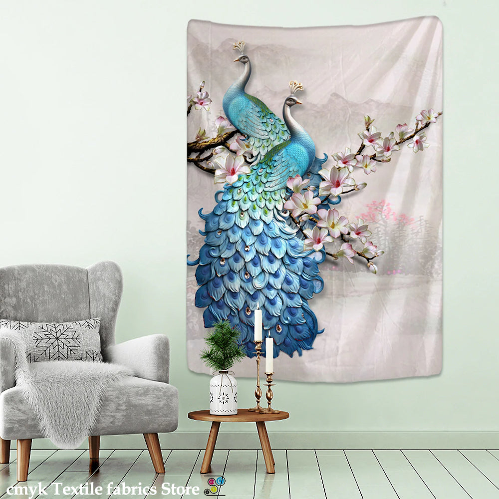 Blue Peacock Mural Tapestry Wall Hanging Tapis Cloth