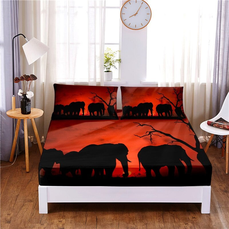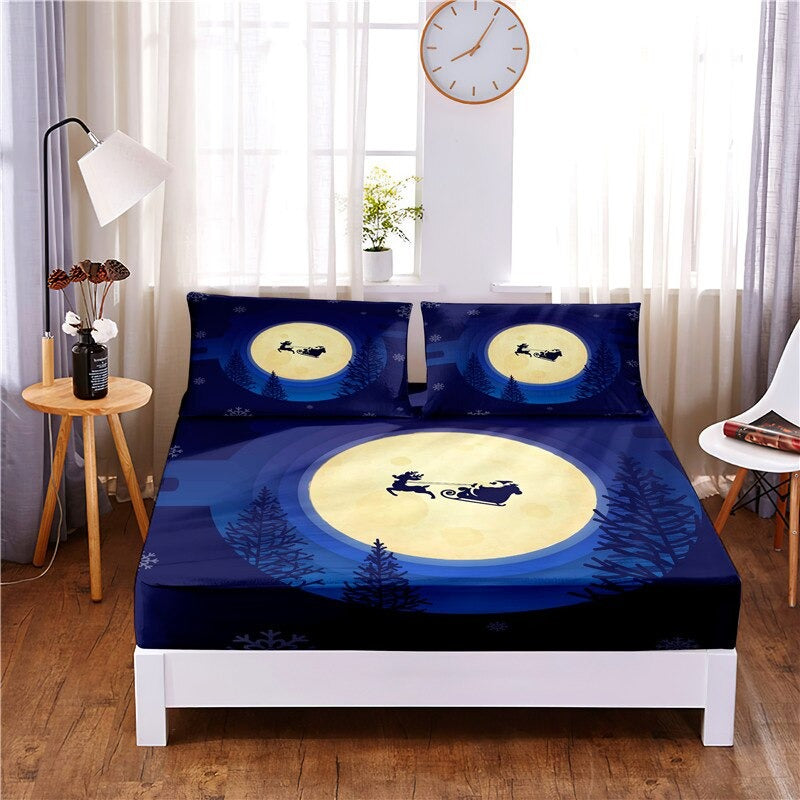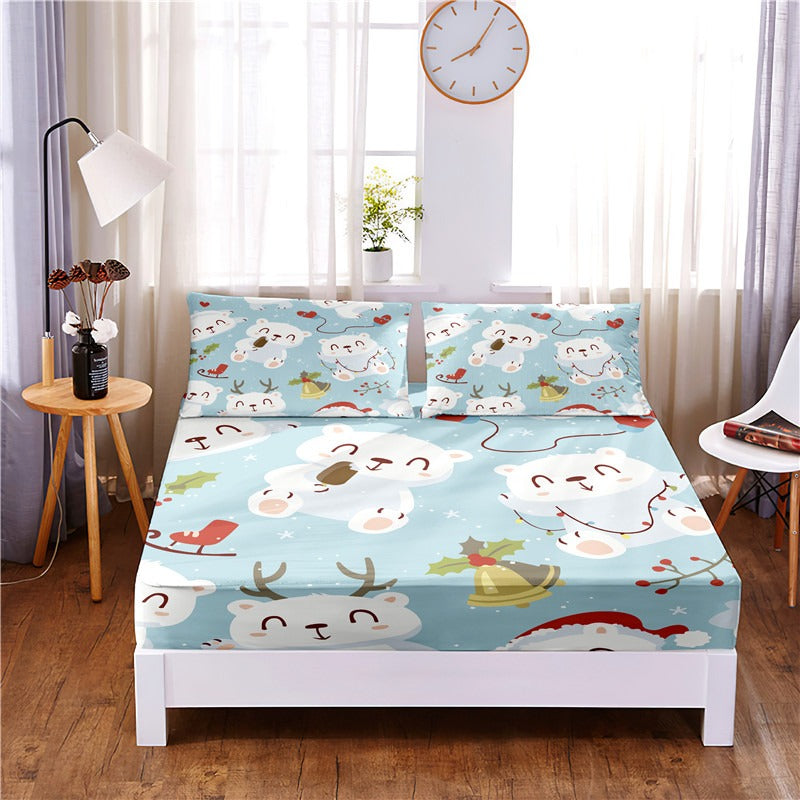3 Pcs Ice Water Digital Printed Polyester Fitted Bed Sheet Set