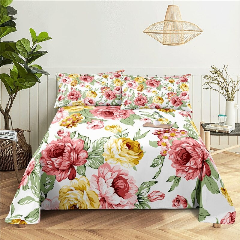 Flowers Digital Printed 3pc Polyester Bedding Set