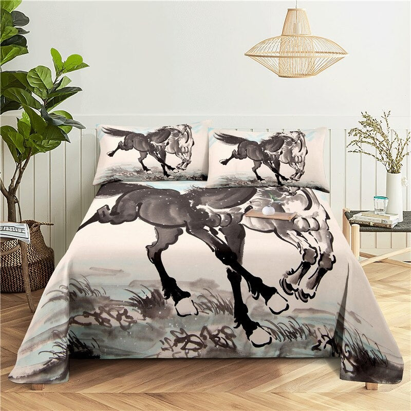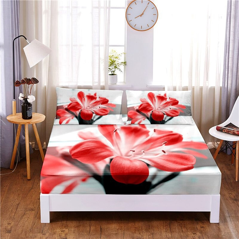 Flower Digital Printed Polyester Bedding And Pillowcases Set
