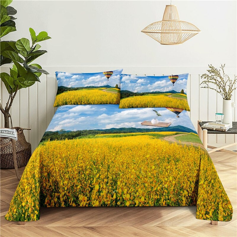 Flower Pattern Complete Bed Sheets And Pillowcases Set