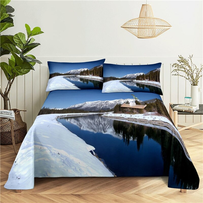 Printed Snow Scenery Bedding Set