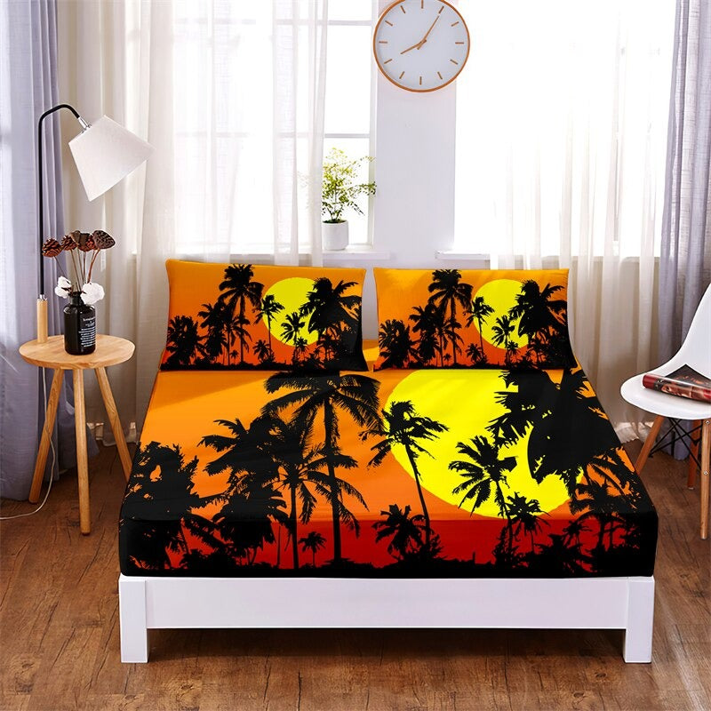 3 Pcs Beach Trees Digital Printed Polyester Fitted Bed Sheet Set