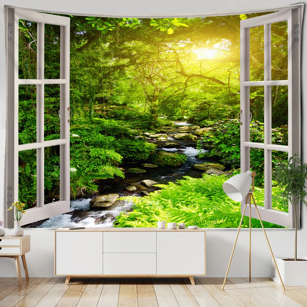 3D Window Scenery Decorative Tapestry Wall Hanging