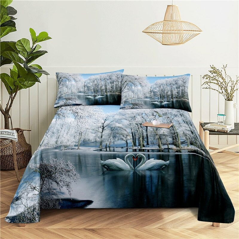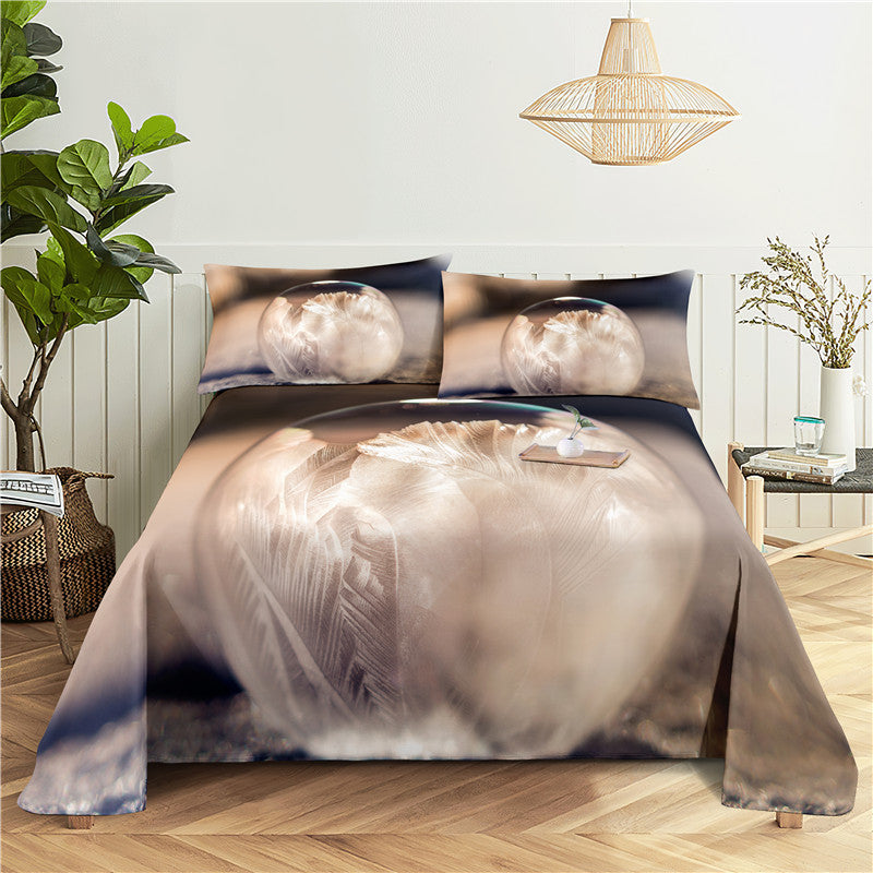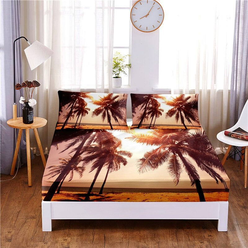 3 Pcs Coconut Tree Digital Printed Polyester Fitted Bed Sheet Set