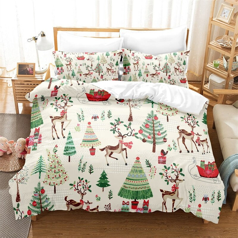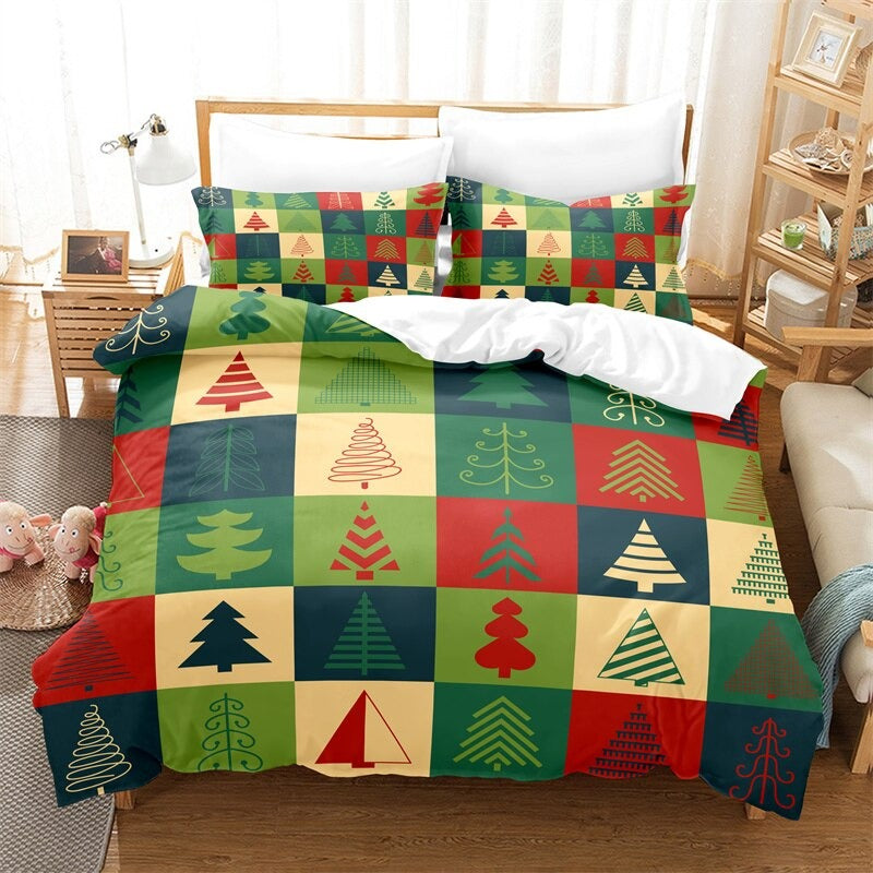 Christmas Tree Themed Duvet Cover And Pillowcase Bedding Set