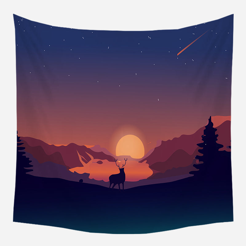 Mountain, Forest Tree, Sunset, Nature Landscape Tapestry Wall Hanging for Room