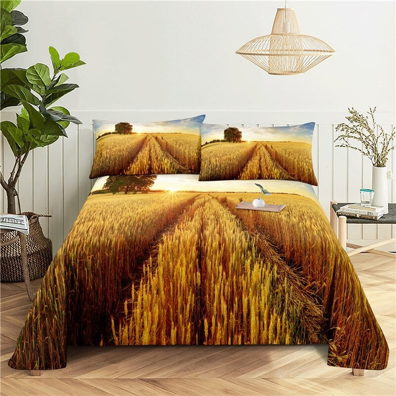 This set of bedding is printed with a mountain scene. The 2 Sets Mountain Printed Bedding is a great addition to your bedroom. It is made of a perfect blend of polyester and cotton material, making it soft and comfortable. The pattern is an eye-catching mountain print that will look great in your bedroom.