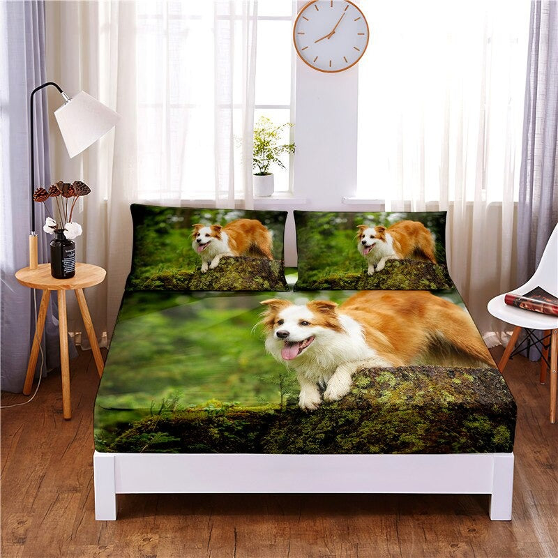 With 3 Pcs Beautiful Dog Digital Printed Polyester Fitted Sheet fitted design, it will fit perfectly over your mattress and stay put – no more chilly nights! Get ready to experience the ultimate in comfort and warmth this winter with high-quality spreads to make your holiday interesting at the night!