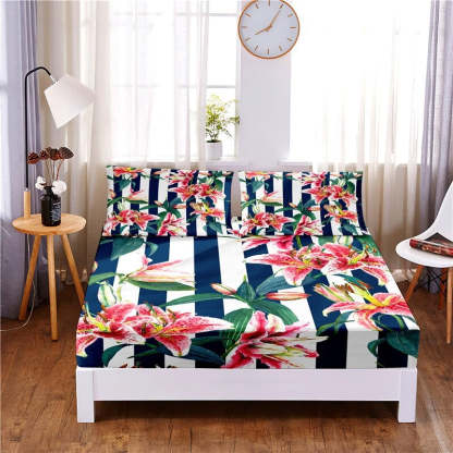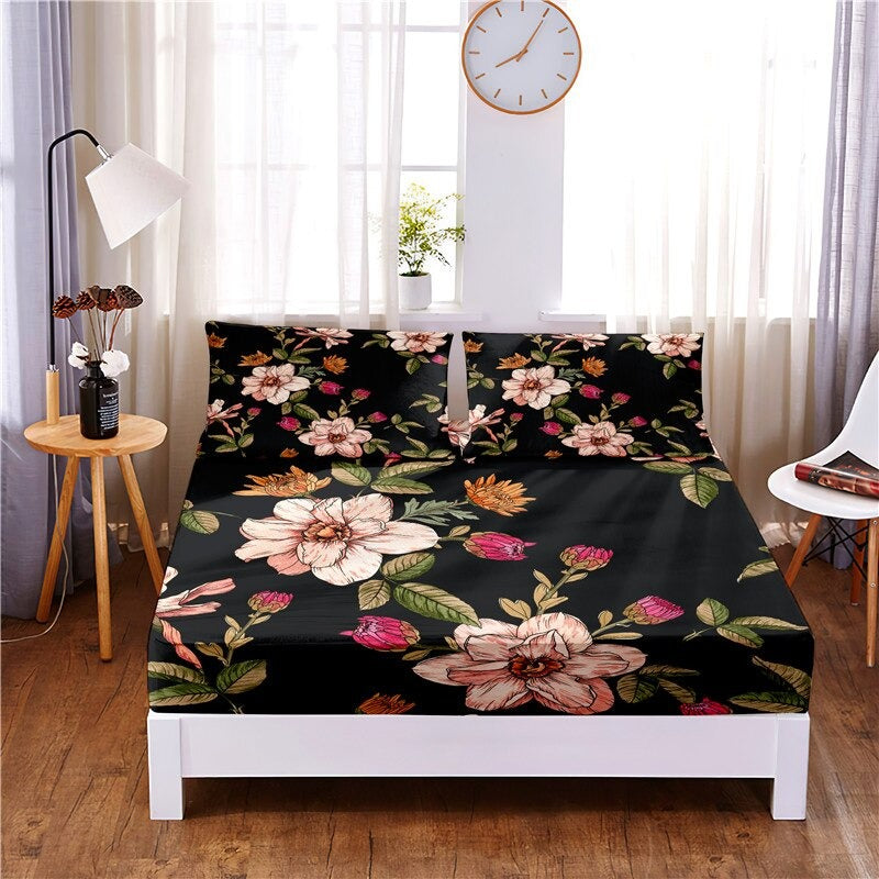 Add a touch of beauty and elegance to your bedroom with this 3 Pcs Beautiful Flower Digital Printed Polyester Fitted Bed Sheet Set. Made from high-quality polyester, these sheets are soft, smooth, and comfortable to sleep on. The digitally printed flowers on the sheets are vibrant and colorful, bringing a refreshing and cheerful vibe to your space. The fitted bed sheets have elastic corners to ensure a perfect fit on your mattress and stay in place all night long. Plus, they are easy to care for and can be machine washed and dried for convenient maintenance. Transform your bed into a stylish and cozy oasis with these beautiful flower digitally printed fitted bed sheets.