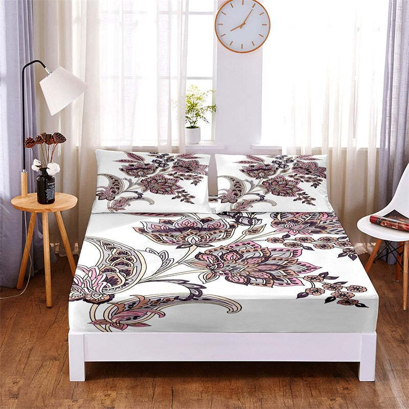These captivating 3 Pcs Flowers, Leaves Digital Printed Polyester Fitted Bed Sheet Set will provide a touch of magic to your bed. These sheets are made of soft, long-lasting polyester and have charming floral digital prints on them in brilliant hues. To provide a tight fit on your mattress, the fitted sheet has deep pockets and elasticized corners on corners. Why then wait? With these lucky printed fitted sheets, you can expect to enjoy the most delightful dreams!