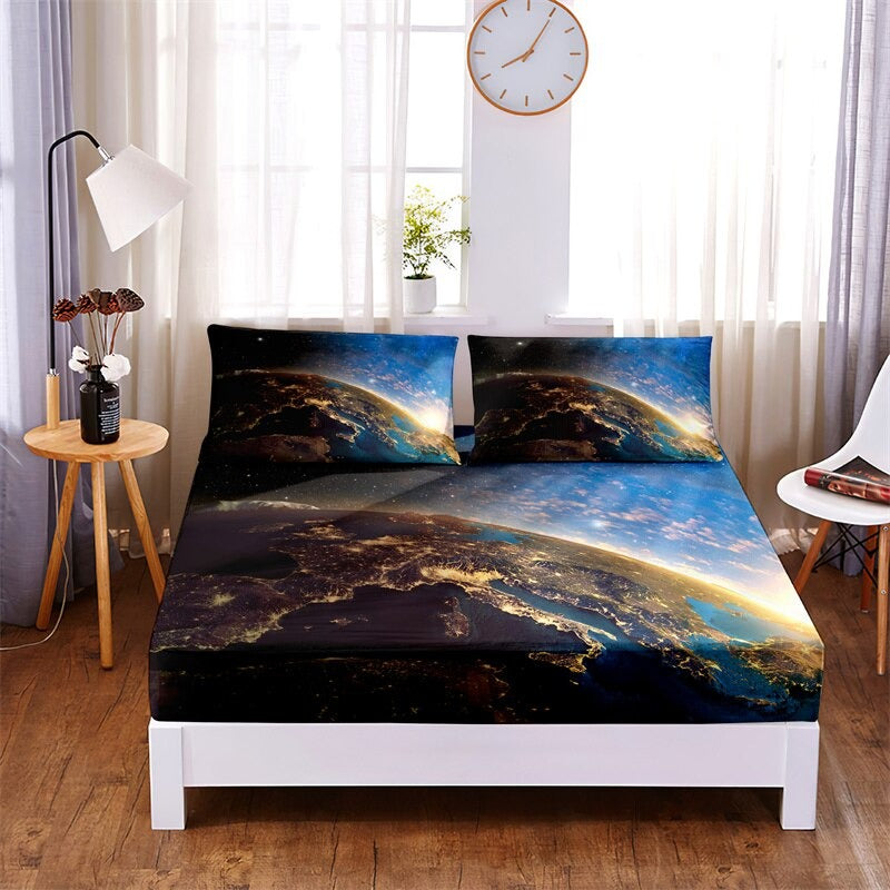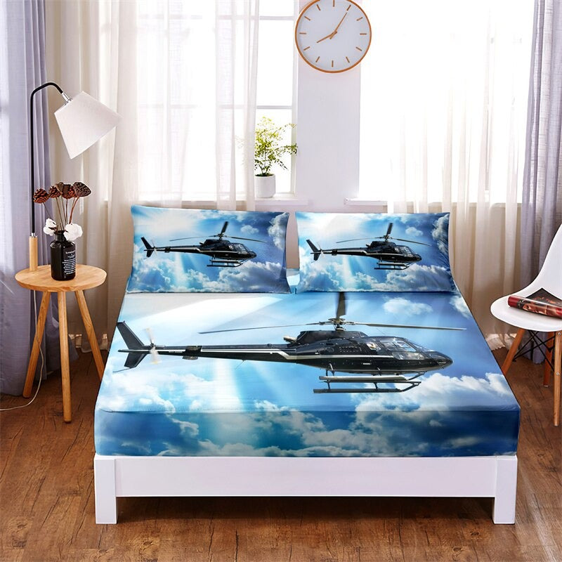 Introducing the 3 Pcs Planet, Airplane Digital Printed Polyester Fitted Bed Sheet Set! This bedding set is perfect for any aviation enthusiast or space lover. The fitted bed sheets feature beautiful, high-quality digital prints of planets and airplanes on a vibrant blue background. Made of durable polyester, these sheets are soft and comfortable to sleep on, and will hold up well to frequent washing. The fitted design means that the sheets will stay securely in place on your mattress, ensuring a comfortable night's sleep.