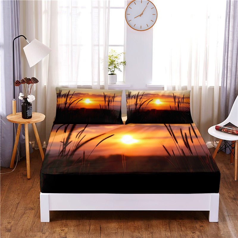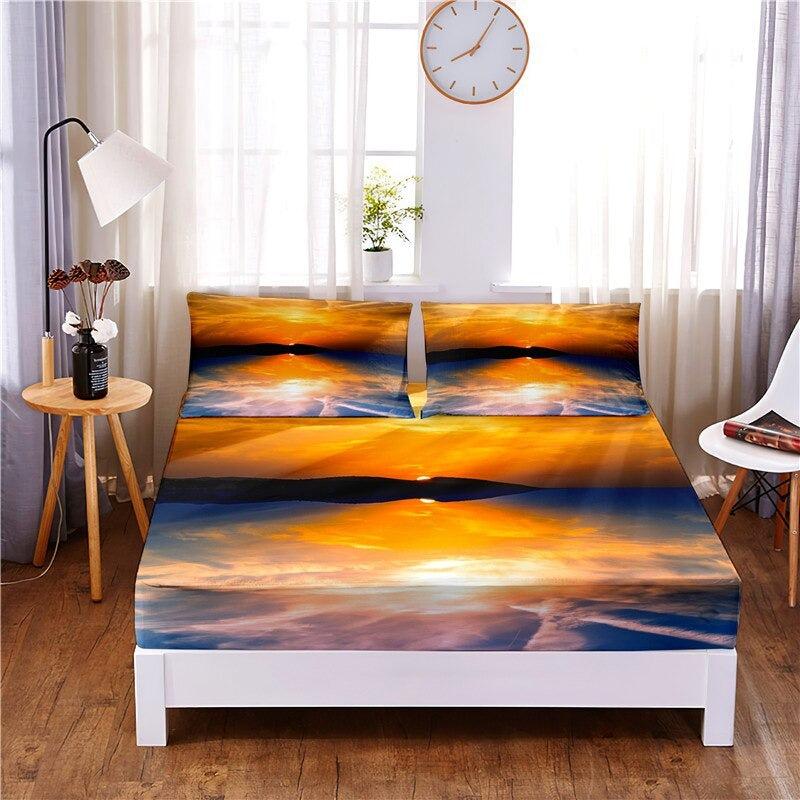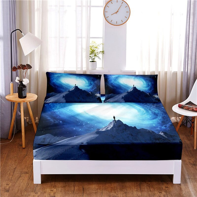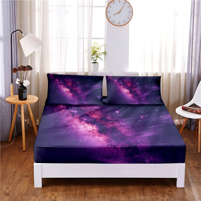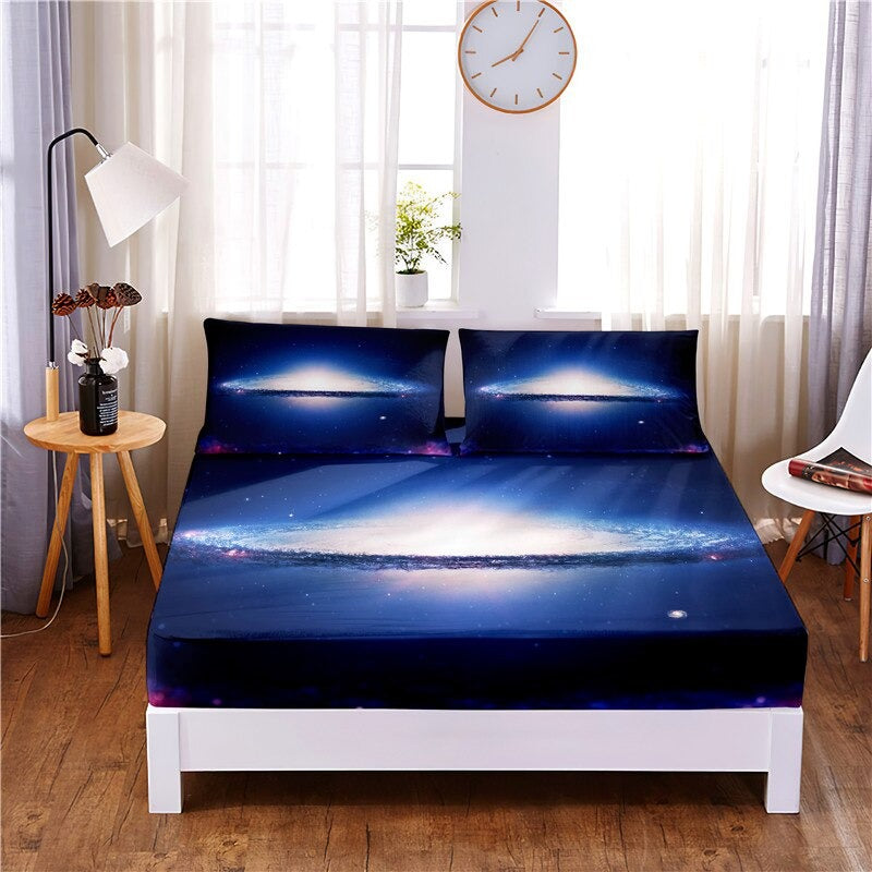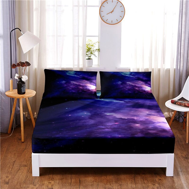 3 Pcs Starry Sky Digital Printed Polyester Fitted Bed Sheet Set is made from a soft and comfortable blend of polyester and cotton, this bedding set is perfect for adding a touch of comfort to your bedroom decor. Each set includes a fitted sheet, a flat sheet, and two pillowcases, making it easy to outfit your entire bed in style. It's perfect for use in your home and will help you sleep peacefully.