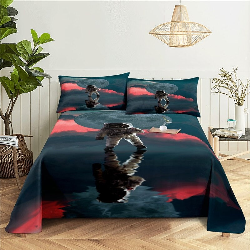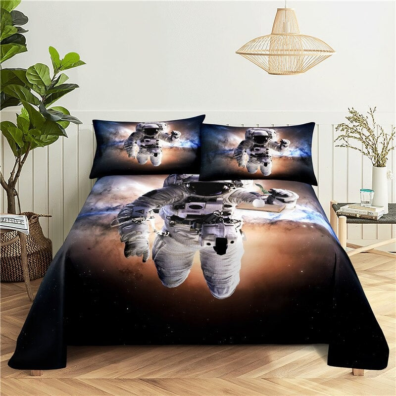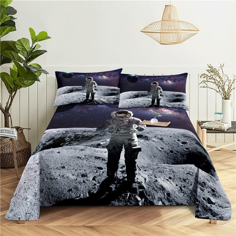 Treat your room to a space-themed bedding set that is great for kids and adults alike. These 3 Sets Astronaut Printed Bedding feature an outer space-themed pattern with different planets and stars. These printed bedding sets are a great gift idea for the young space enthusiast in your life! They are machine washable and easy to care for.