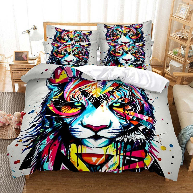 This incredible 3D Colorful Tiger Printed Bedding Set is sure to be a hit in any bedroom! Featuring a bold and vibrant colorful tiger print, this set includes a comforter, two shams, and two pillowcases. The comforter is made of ultra-soft microfiber fabric, making it perfect for snuggling up in on cool nights. The shams and pillowcases feature a vibrant and eye-catching colorful tiger print that will bring a touch of wildness to any room. This bedding set is perfect for adding a splash of color and fun to any bedroom.