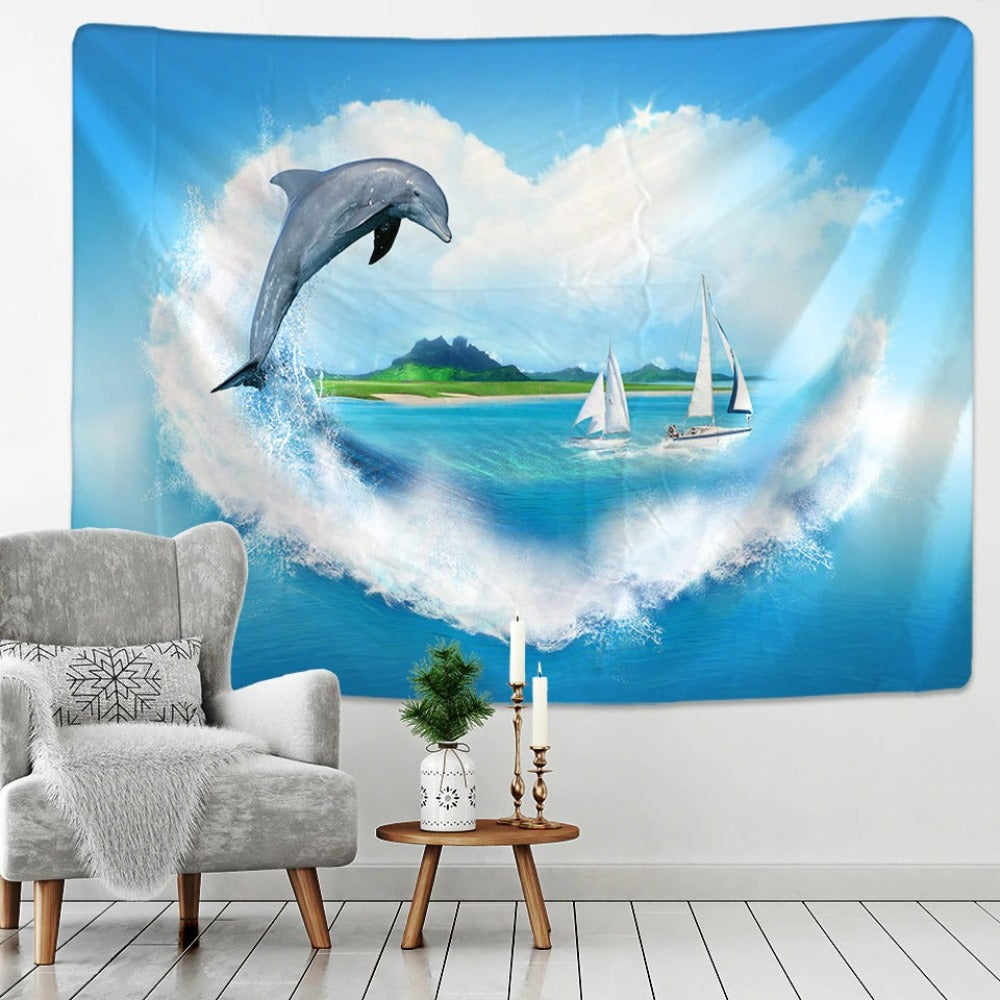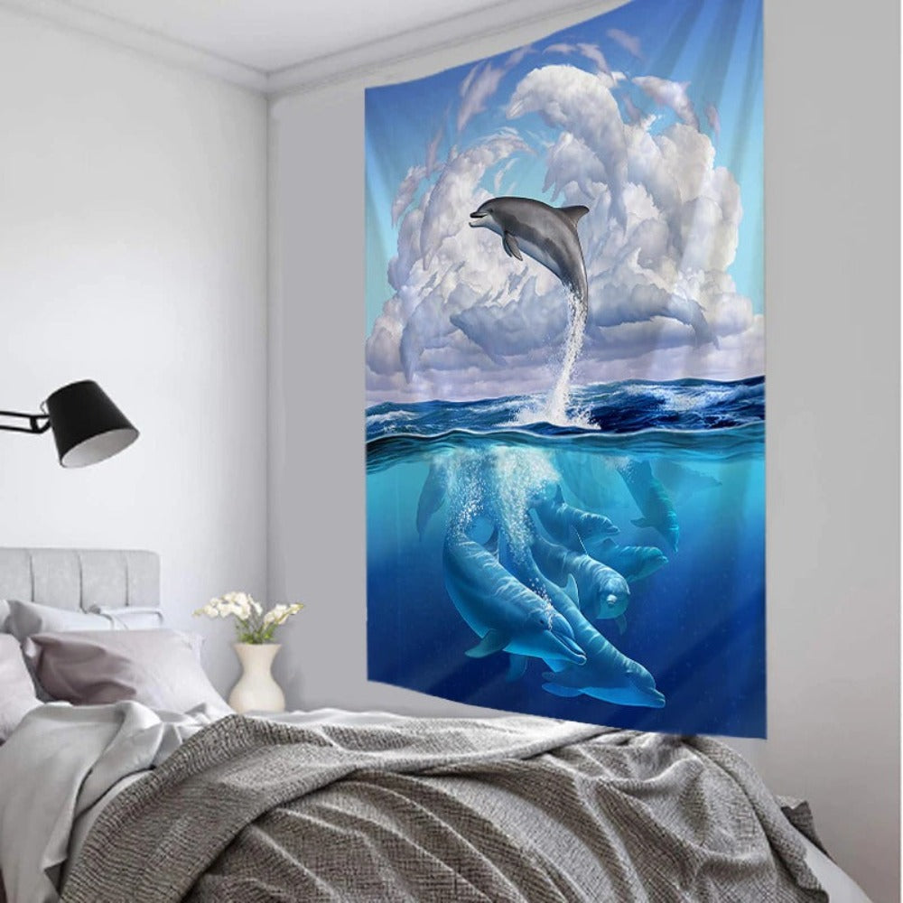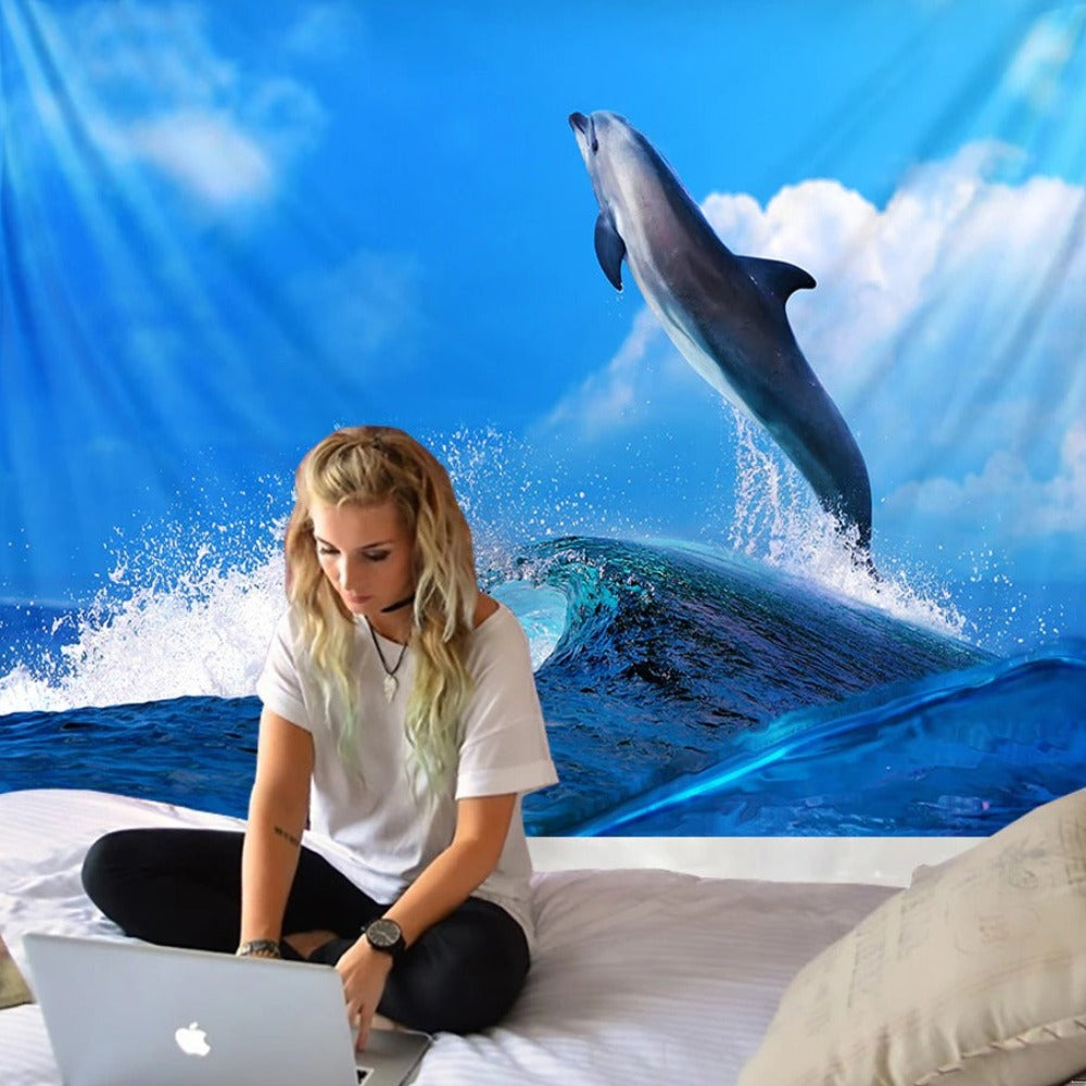 3D Dolphin Art Tapestry Wall Hanging Tapis Cloth has exquisite colors and clean finishing, making it a fantastic focal point for any room. These high-quality tapestries are intended to add a fashionable touch to your living room, hallway, or bedroom.