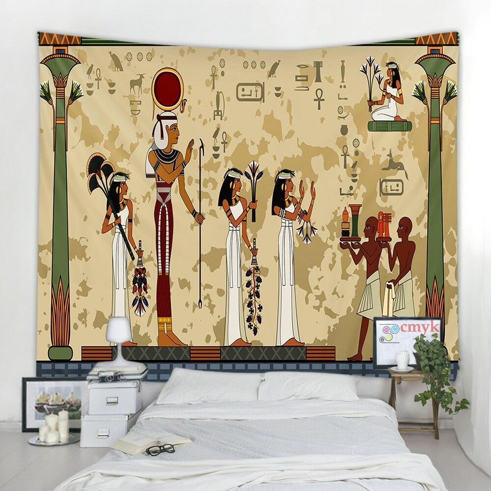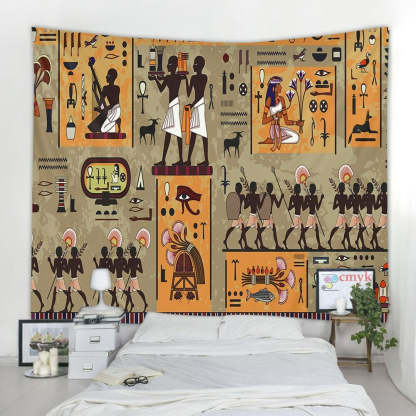 Ancient Egyptian Art Tapestry Wall Hanging Tapis Cloth has exquisite colors and clean finishing, making it a fantastic focal point for any room. These high-quality tapestries are intended to add a fashionable touch to your living room, hallway, or bedroom.