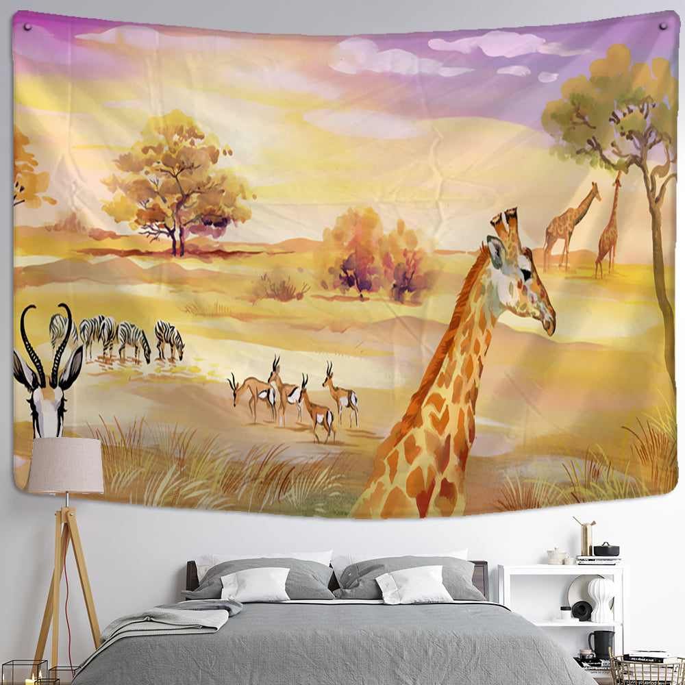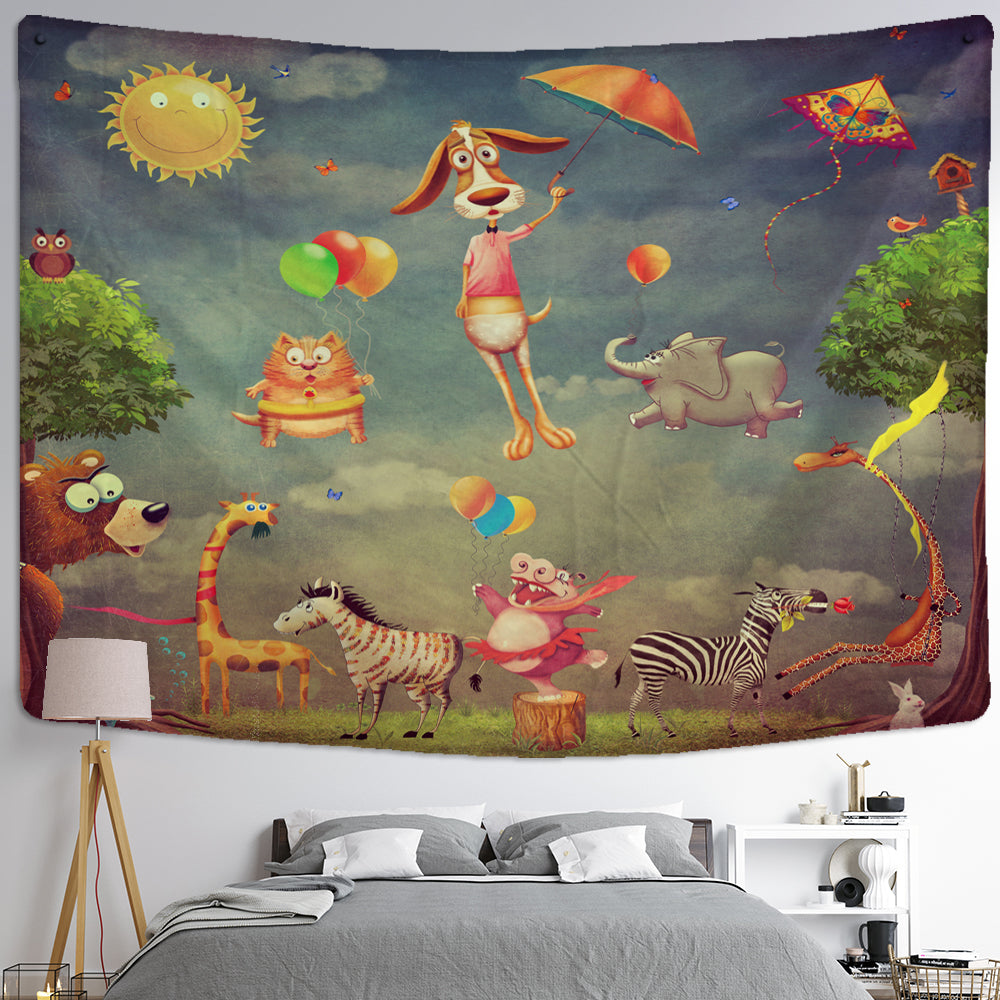 Animal Cartoon Illustration Tapestry Wall Hanging Tapis Cloth has exquisite colors and clean finishing, making it a fantastic focal point for any room. These high-quality tapestries are intended to add a fashionable touch to your living room, hallway, or bedroom.