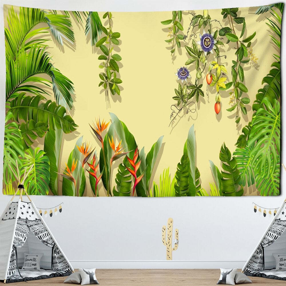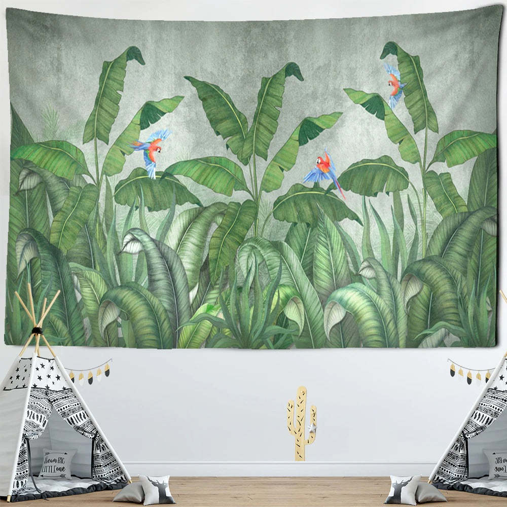 Animals Tropical Plants Tapestry Wall Hanging Tapis Cloth has exquisite colors and clean finishing, making it a fantastic focal point for any room. These high-quality tapestries are intended to add a fashionable touch to your living room, hallway, or bedroom.