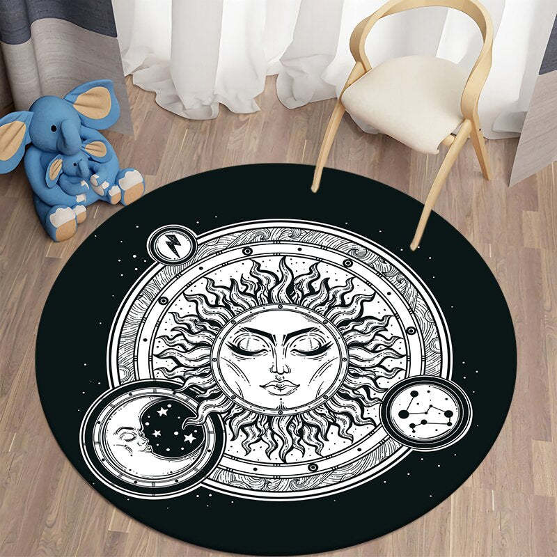 Make everyday spiritual by bringing the Anti-Slip Sun And Moon Printed Round Mat to your home. This round mat has the finest texture and feels very soft to the touch. The polyacrylonitrile fiber feels very soft and comfortable every time you walk or sit on it. Get this anti-slip round mat today!