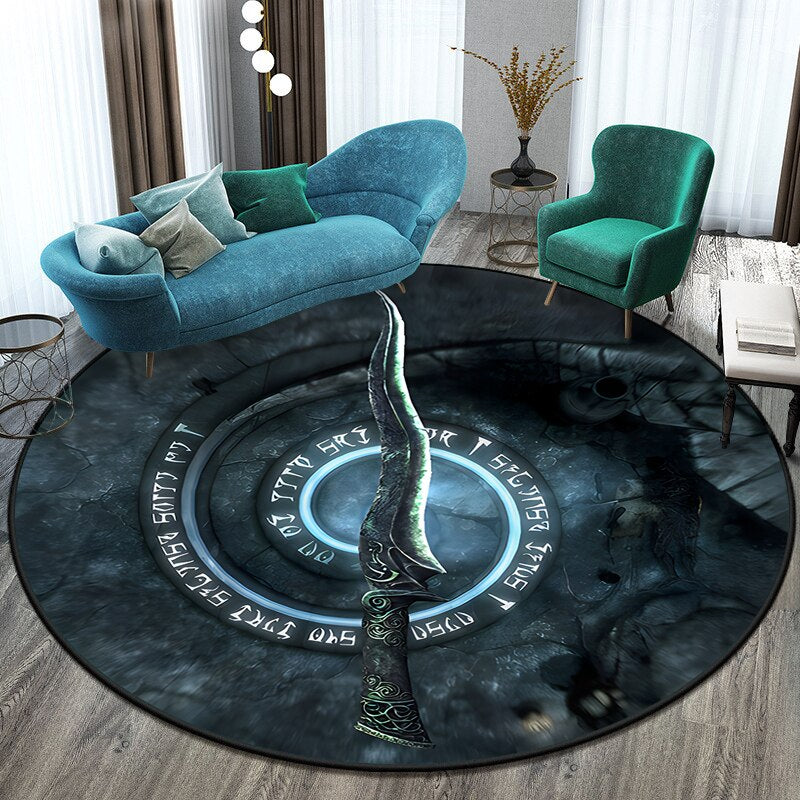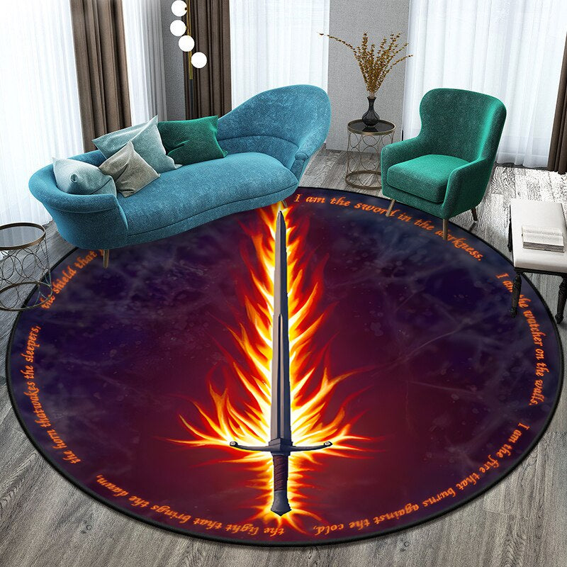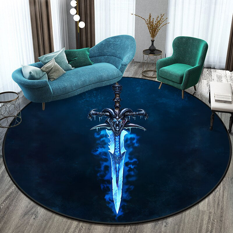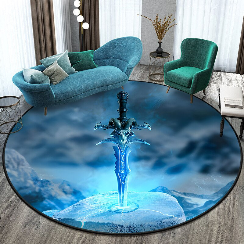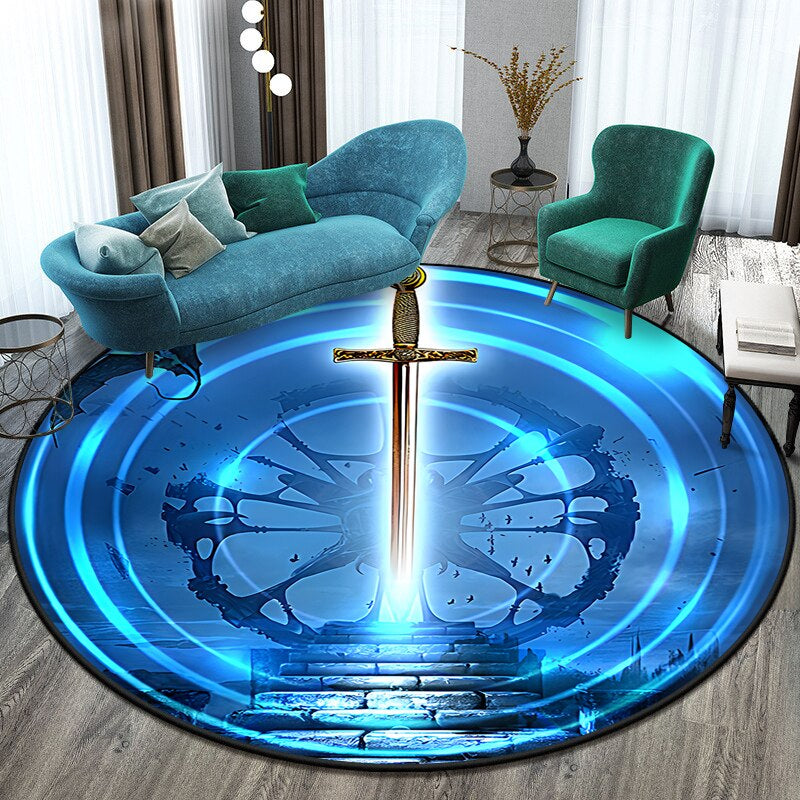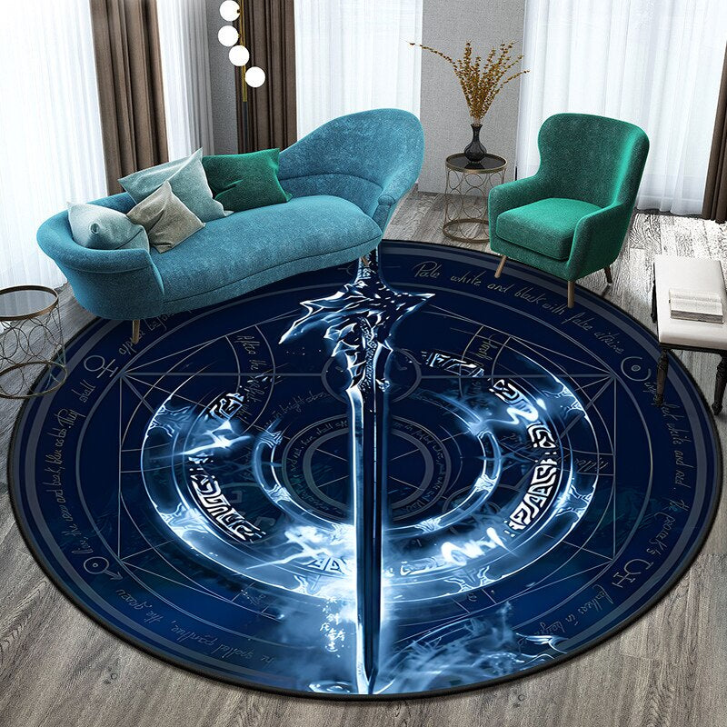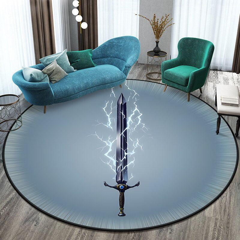 Anti-Slip Sword Art Printed Round Mat - Transform Your Space