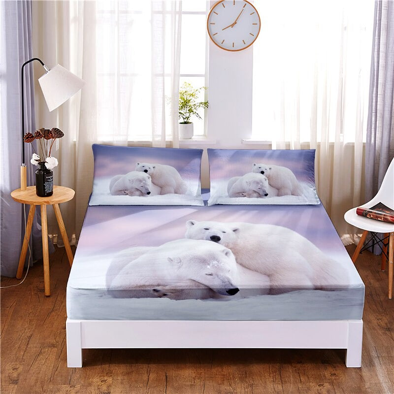 Give your bed a brand new look with this Arctic Animals Digital Printed Fitted Sheet Mattress Cover. The dimensions are one layer of polyester and cotton, high thread count, and a flat printed pattern on both sides. These are high-quality printed sheets for your home or hotel room. The softness of the material makes these sheets comfortable to sleep on. The fitted sheet is suitable for use as a mattress cover for your standard double/full-sized beds.