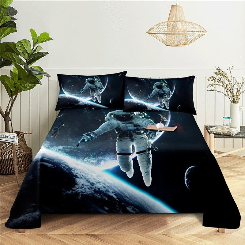These Astronaut Flat Sheets Set are printed and have a soft texture for a good, comfortable sleep, so you can have a dream and travel the universe in your dreams. These sets are available in different colors and patterns. These sets are flat, and they are a good option for gifts. These sets are made with high-quality materials like polyester and cotton, and they are also available at a very reasonable price.
