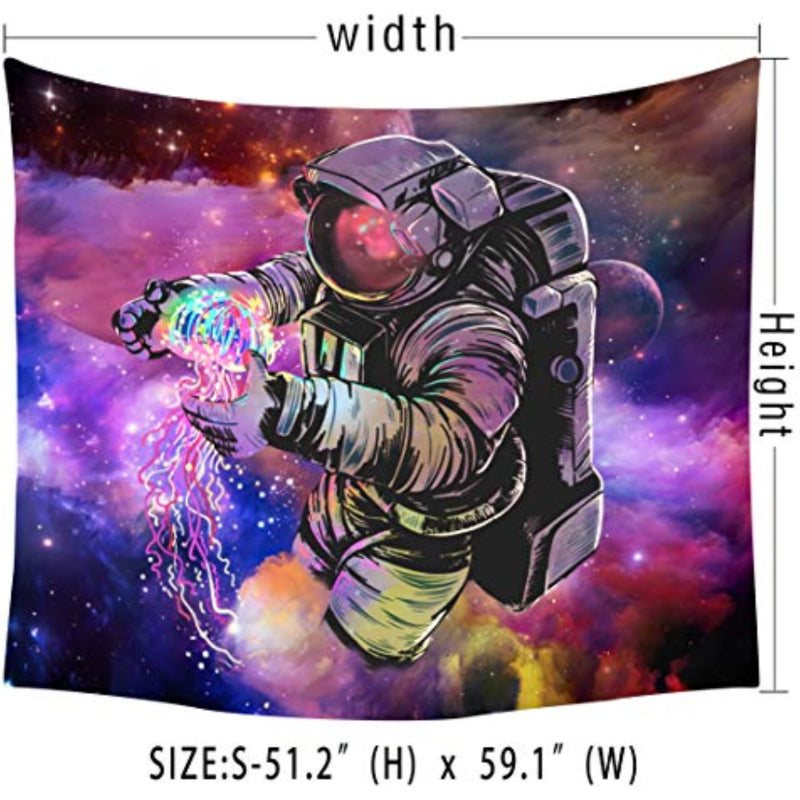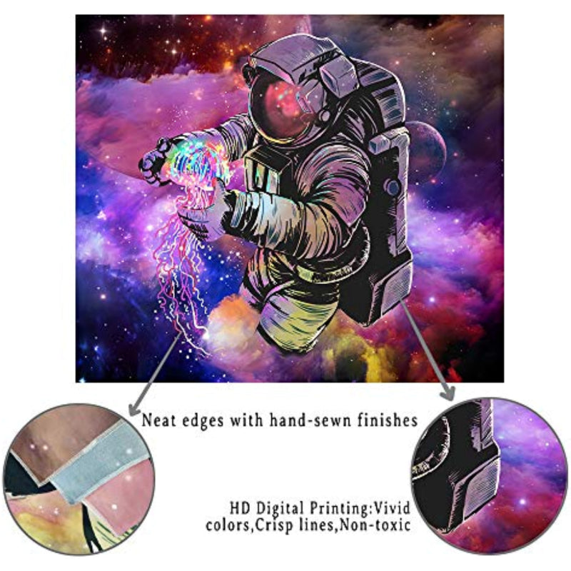 The Astronaut Tapestries Wall Tapestry is a beautiful piece of bohemian and hippie-inspired wall art that is perfect for anyone who loves space, galaxies, and trippy, dreamy art. Made from soft, high-quality fabric, this tapestry features a vibrant, detailed design of an astronaut floating among the stars, surrounded by planets and galaxies.