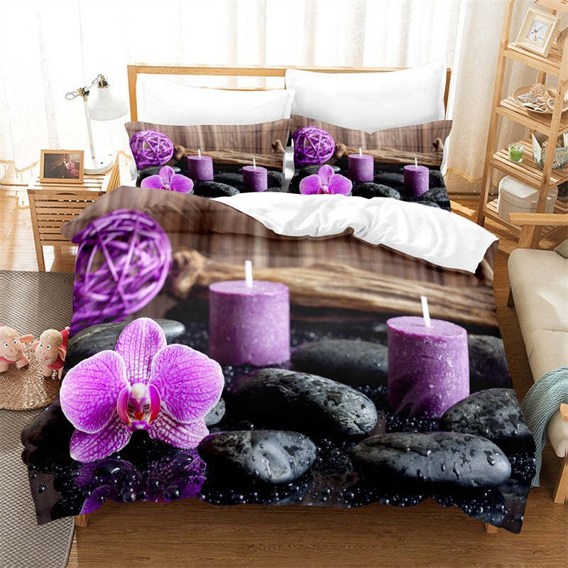Bamboo Pastoral Style Duvet Cover Comforter Set features a print of plants and small ponds that makes it very irresistible. The bedding set consists of 1 duvet cover and 1/2 pillowcase. The entire set is made of polyester fabric. This set will give you a good snuggly sleep and make your bedroom look amazing.