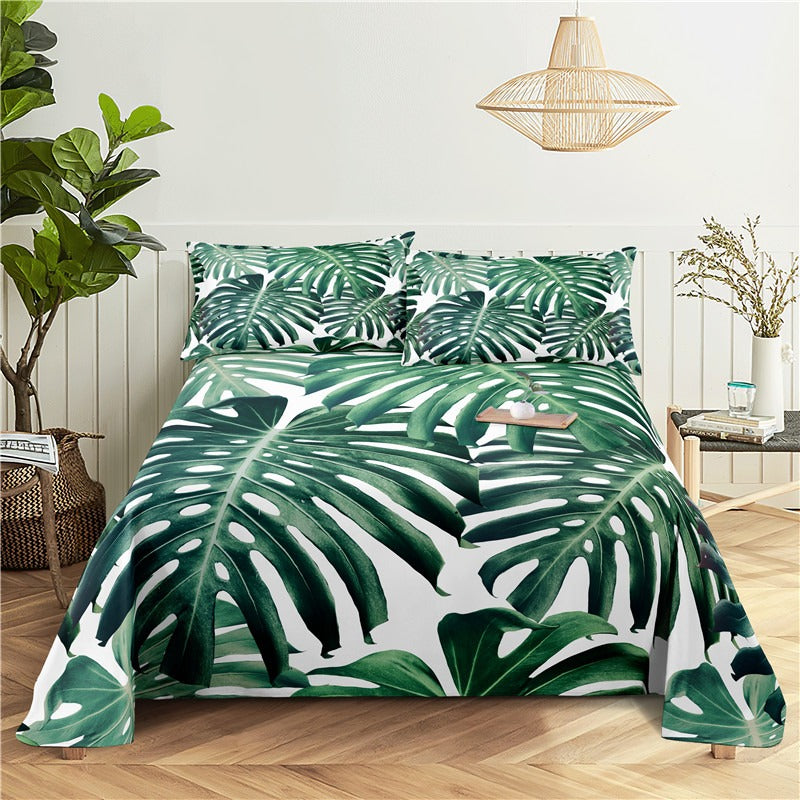 Banana Leaf Print Bed Flat Bedding Set is a stylish and vibrant bedding set that is perfect for adding a tropical touch to your bedroom. Made of soft and durable polyester material, this bedding set is designed to be comfortable, easy to care for, and long-lasting. The bedding set is machine washable, making it easy to keep clean and fresh. Whether you are looking to refresh your bedroom decor or just want to add a touch of tropical flair, the Banana Leaf Print Bed Flat Bedding Set is a great choice.