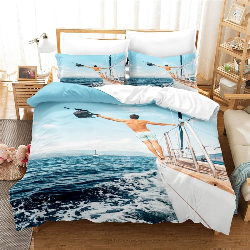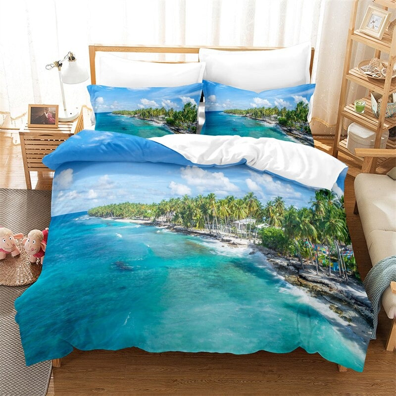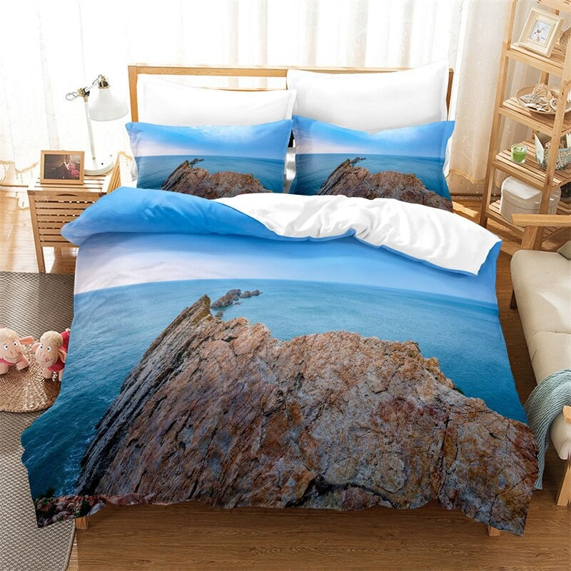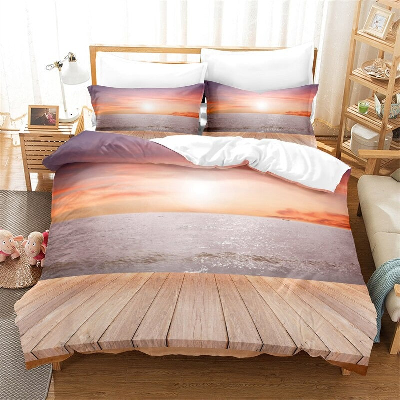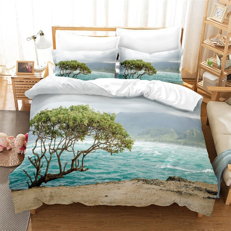 This Beach View Printed Bedding Set is the perfect addition to your beach-themed bedroom. The set comes with a comforter, two pillow shams, and a bed skirt, all in a stunning beach-inspired design. The pillow shams feature a unique beach scene pattern that will give your bedroom a serene, coastal vibe. The bed skirt is made from a durable, wrinkle-resistant fabric that will last for years. With this Beach View Printed Bedding Set, you can drift away to the soothing sounds of the waves, even in your own home.