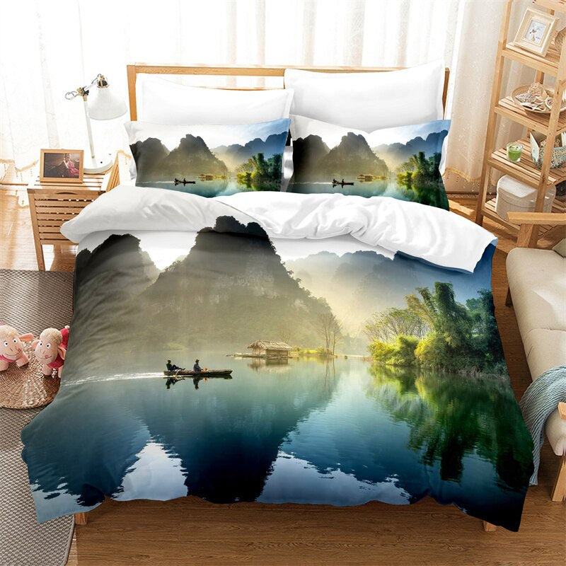 Make your bedroom space more unforgettable with this stylish Beautiful Landscape Bedding Set. The landscape design of this bedding set makes it more demanding and alluring and gives a decent vibe to your room. Premium polyester is used in its making and it is super-soft and delicate in touch. This fantastic bedding set is available in 12 different styles, so choose your favorite one.
