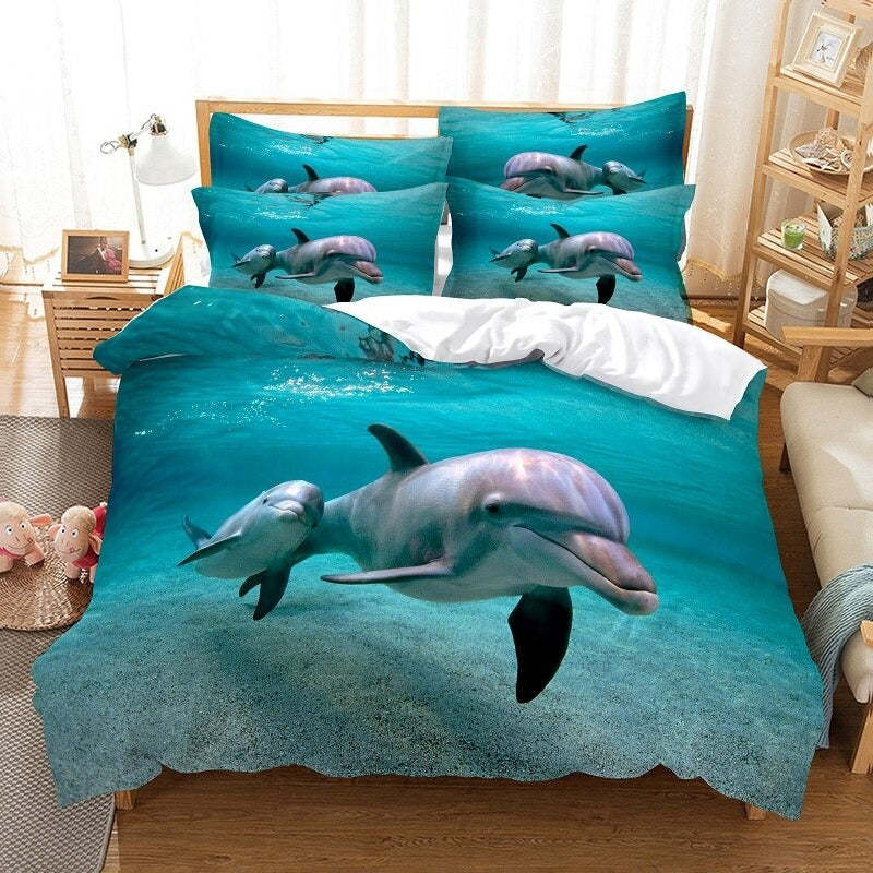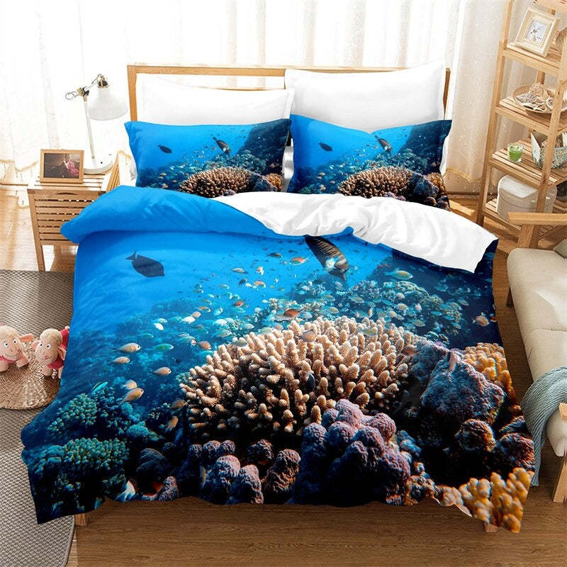The Blue Sea Pattern Duvet Cover And Pillowcase Complete Set is a stunning addition to any bedroom. The duvet cover features a mesmerizing blue sea pattern, bringing the tranquility of the ocean into your space. Made from soft and luxurious cotton, it's the perfect choice for a comfortable night's sleep. The pillowcases feature the same stunning pattern, adding a cohesive look to your bedding ensemble. This complete set is machine washable and easy to care for, making it a practical choice for busy lifestyles. With its sophisticated design and high-quality construction, the Blue Sea Pattern Duvet Cover and Pillowcase Complete Set are sure to become a treasured part of your bedding collection.