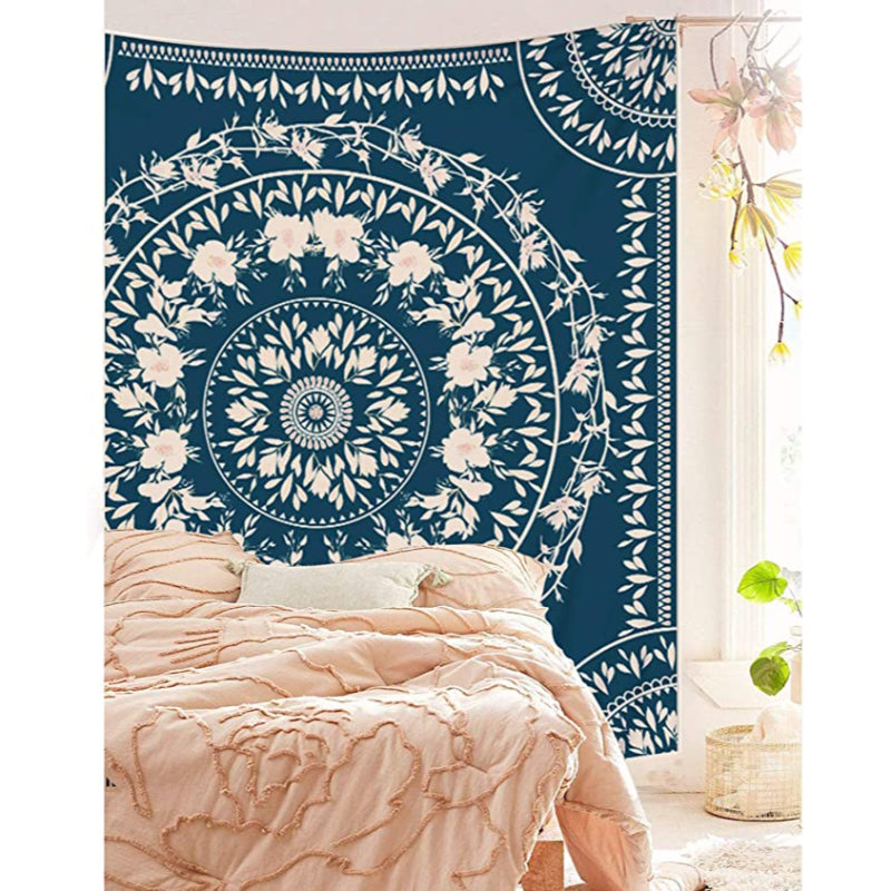 The Blue Sketched Floral Medallion Tapestry is a stunning piece of Bohemian decor that adds a touch of elegance and sophistication to any room. This intricate Indian art print mural is made of high-quality, durable materials and features a mesmerizing blue mandala design set against a rich white background. Perfect for use in a bedroom, living room, dorm, or home, this beautiful tapestry is sure to add a touch of warmth and style to any space.