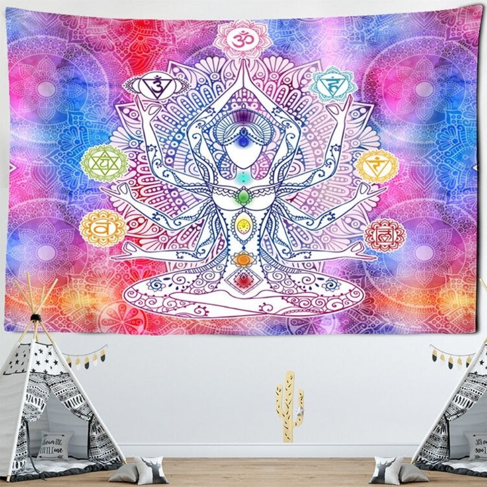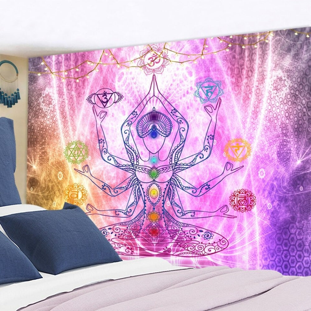 Body Chakras Tapestry Wall Hanging Tapis Cloth has exquisite colors and clean finishing, making it a fantastic focal point for any room. These high-quality tapestries are intended to add a fashionable touch to your living room, hallway, or bedroom.