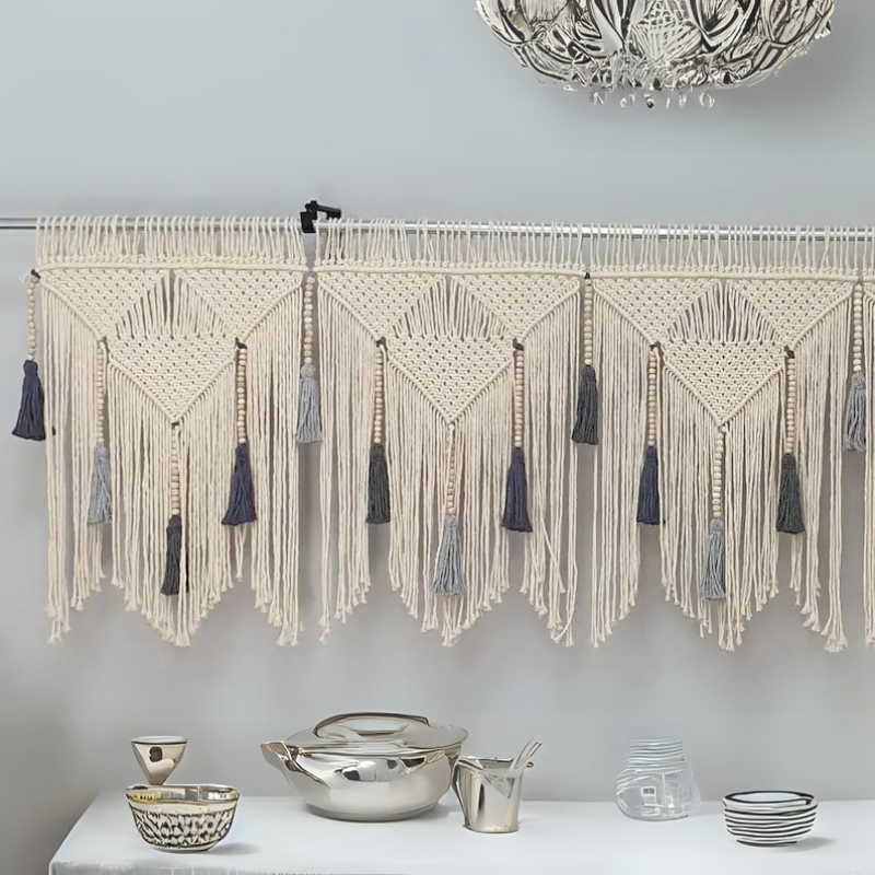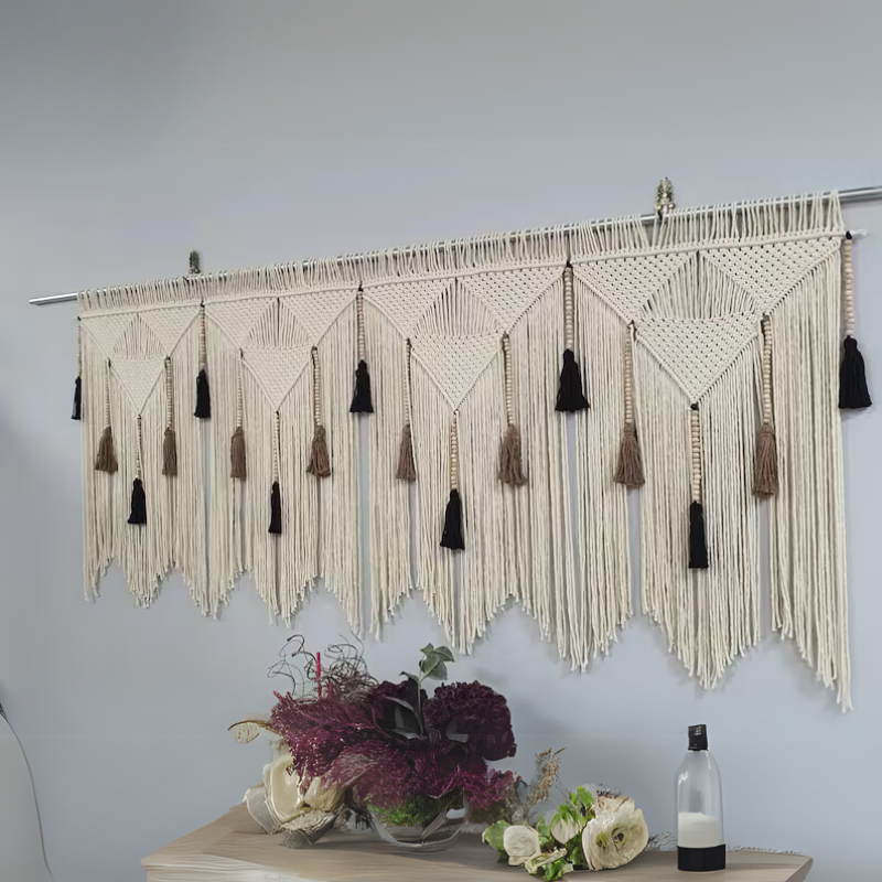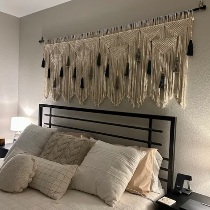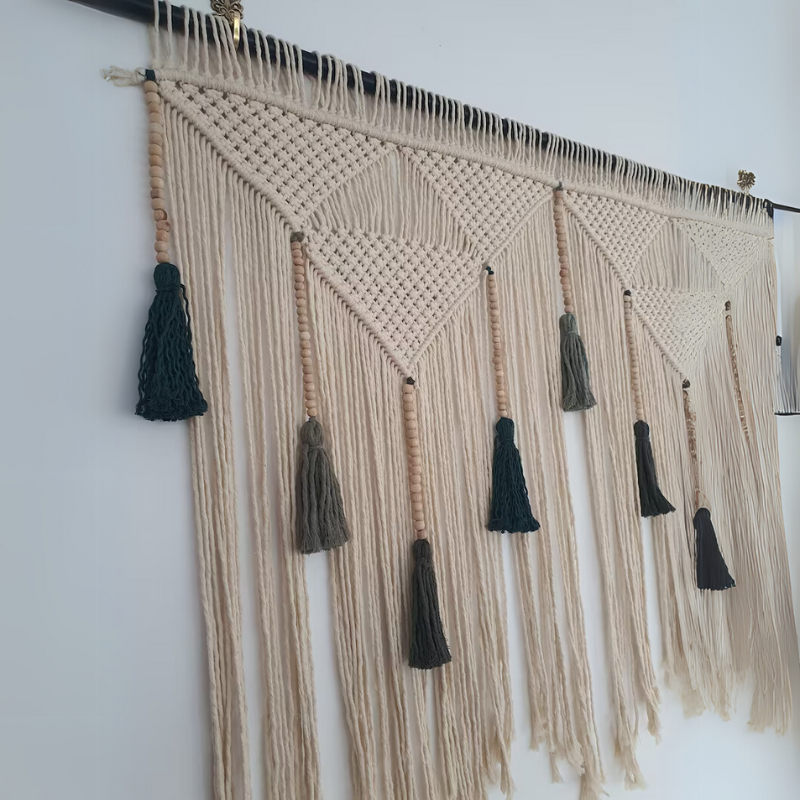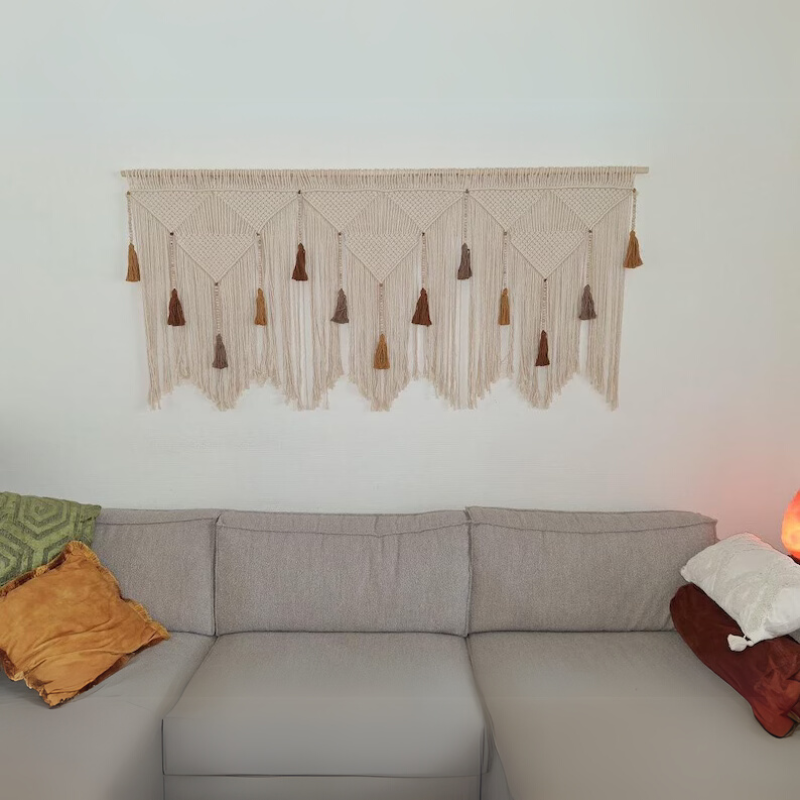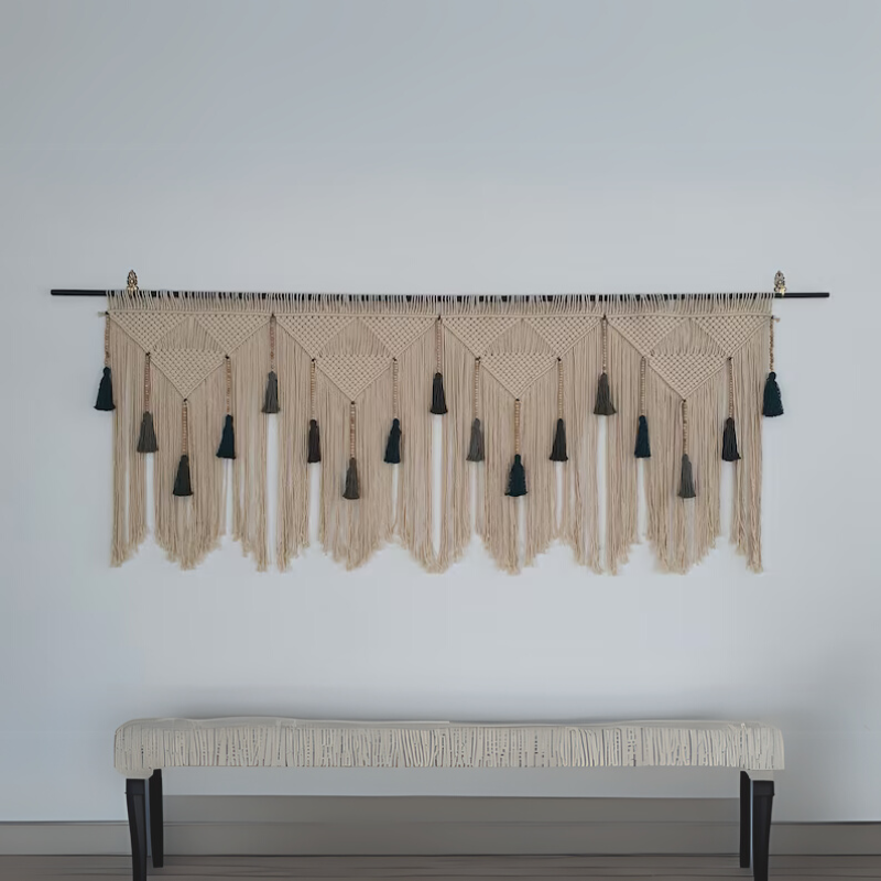 This bohemian wall hanging complements a variety of interior aesthetics, making it a versatile piece for any home.