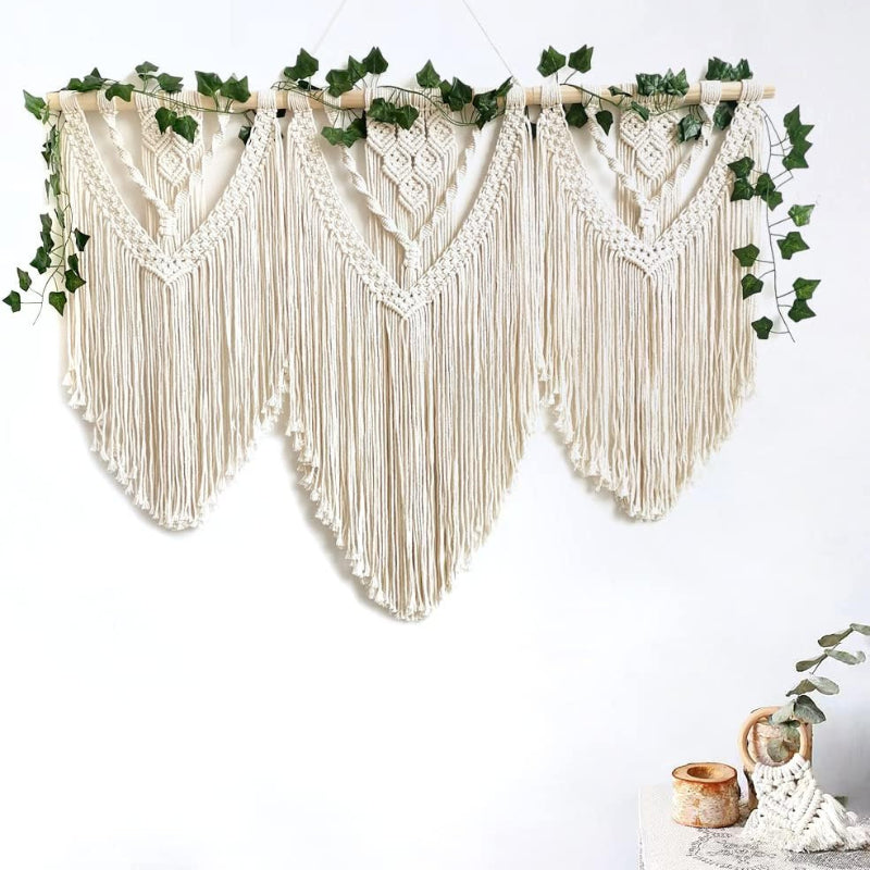 This bohemian wall hanging brings a natural and artistic touch to living rooms, bedrooms, and workspaces. The macrame tapestry art is crafted from durable woven materials, ensuring a timeless and elegant decor statement.