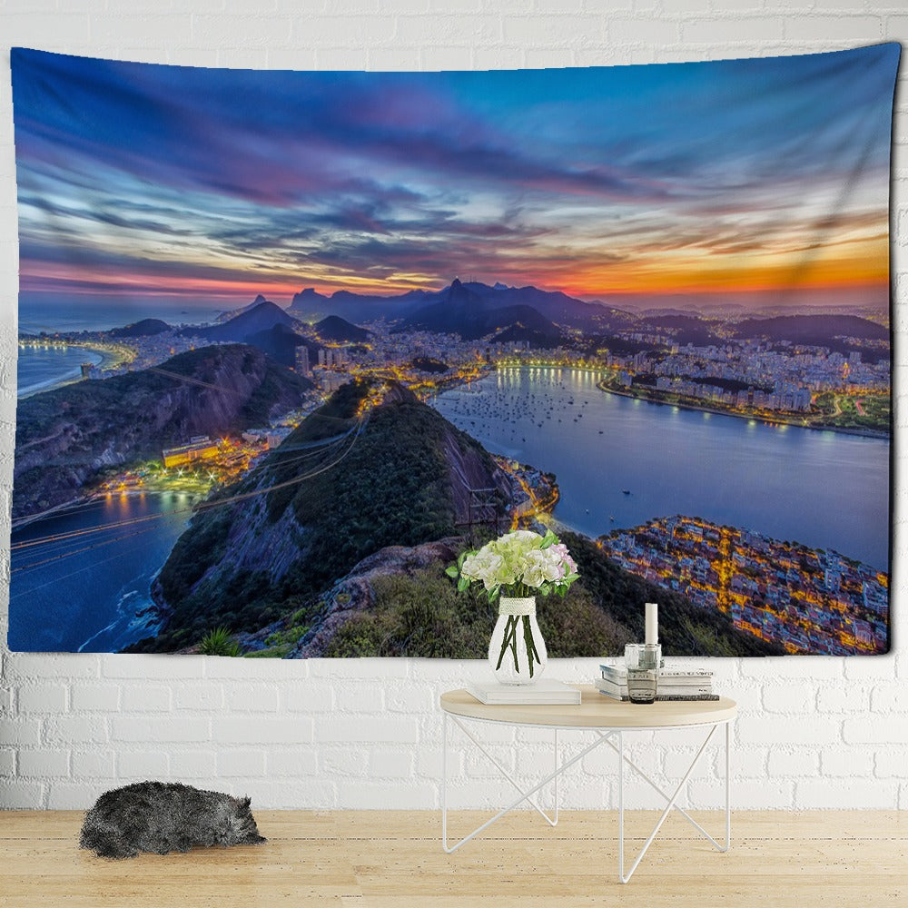 Brazil City View Tapestry Wall Hanging Tapis Cloth has exquisite colors and clean finishing, making it a fantastic focal point for any room. These high-quality tapestries are intended to add a fashionable touch to your living room, hallway, or bedroom.