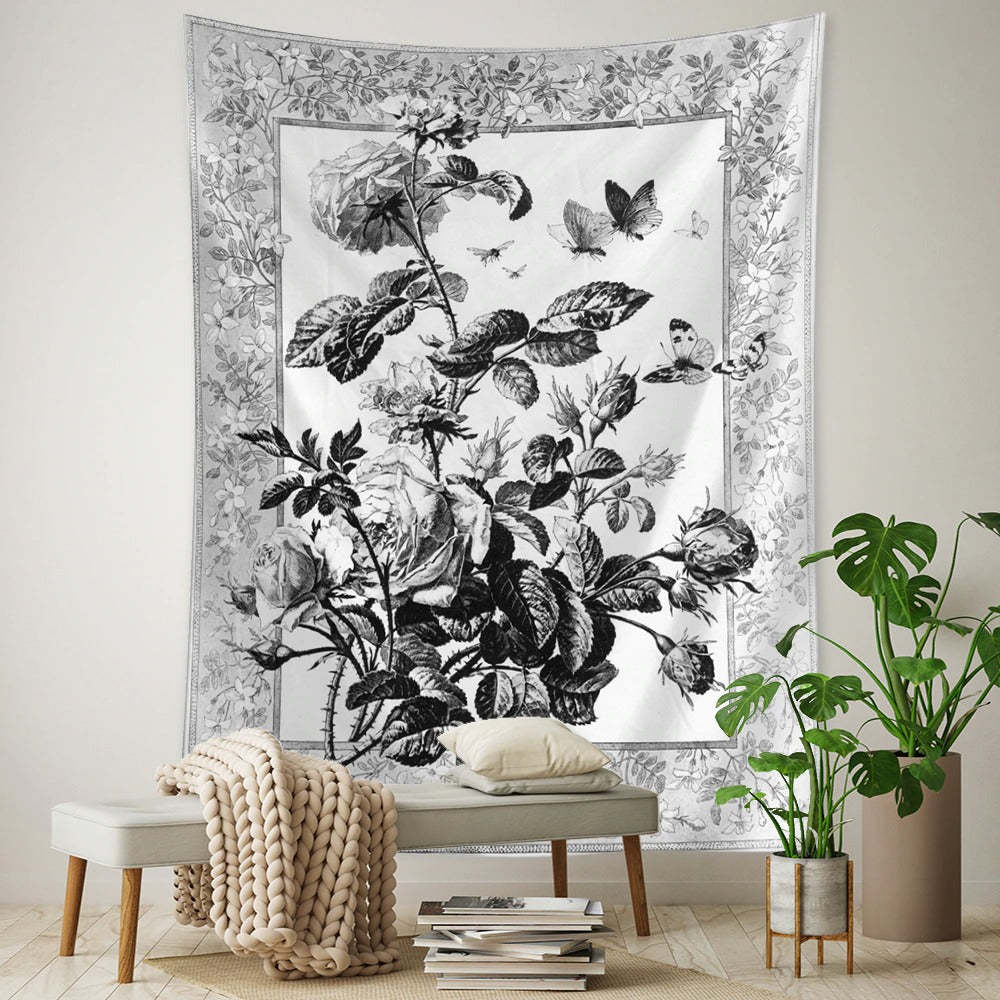 Butterfly And Flowers Mural Tapestry Wall Hanging Tapis Cloth has exquisite colors and clean finishing, making it a fantastic focal point for any room. These high-quality tapestries are intended to add a fashionable touch to your living room, hallway, or bedroom.