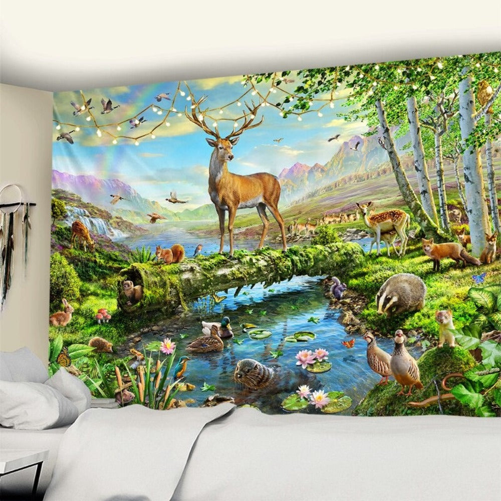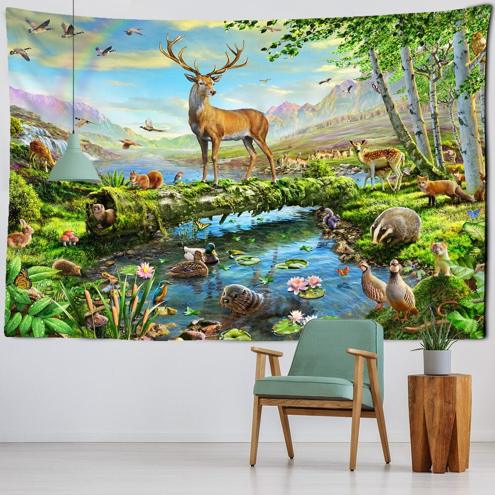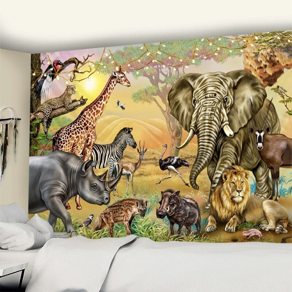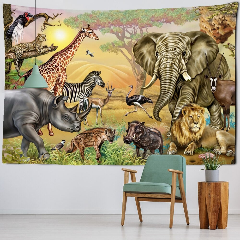 Cartoon Animal Illustration Wall Hanging Tapis Cloth has exquisite colors and clean finishing, making it a fantastic focal point for any room. These high-quality tapestries are intended to add a fashionable touch to your living room, hallway, or bedroom.