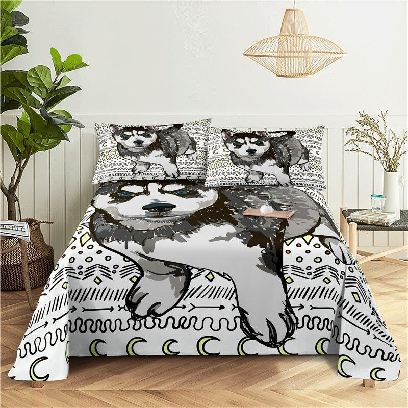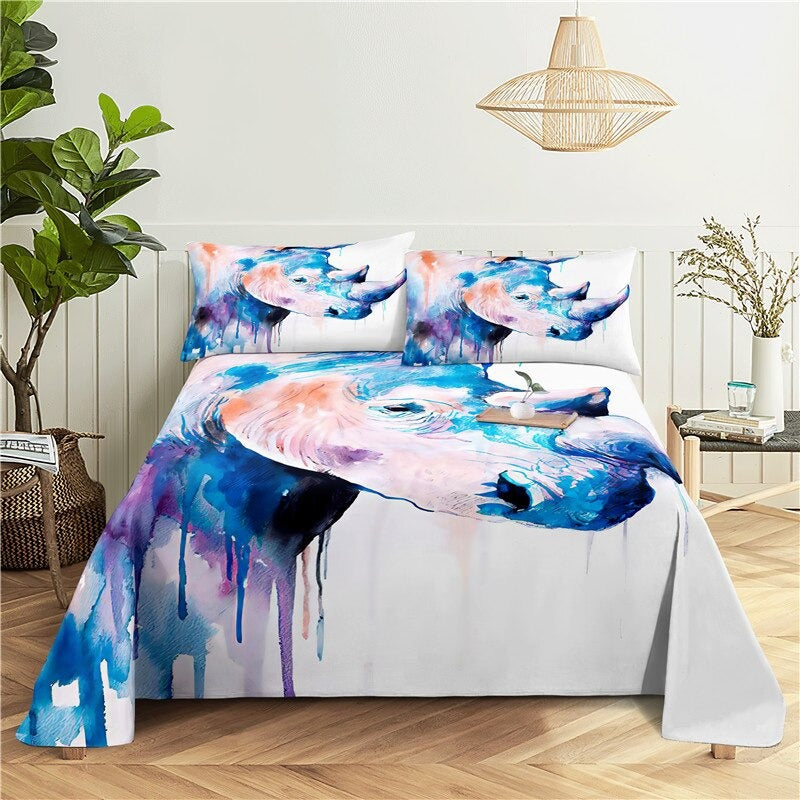 Your little one can dream of adventures and play pretend with this bright and colorful bedding set! Featuring animals like dogs, horses, and bulls, this Cartoon Animal Print Polyester Bedding Set is sure to be a hit with your child. Made of soft polyester, this set will last through the years. These sets are machine-washable for easy care and include a fitted sheet and matching pillowcase.
