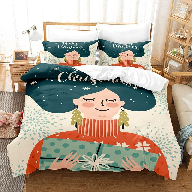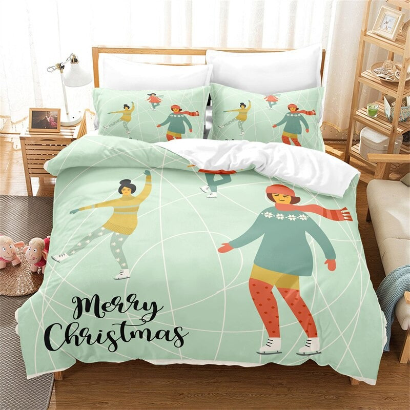 Bring a little holiday cheer to your bedroom with this festive Cartoon Christmas Celebration Duvet Cover Set! This set is perfect for the Christmas season and is sure to be a hit with kids and adults alike. The duvet cover features a cheerful cartoon Christmas scene with Santa Claus, reindeer, and snowflakes. The reverse side is a solid white color, and the set comes with two matching pillowcases. The set is made from soft and comfortable polyester fabric and is machine washable for easy care. Add a little holiday spirit to your bedroom with this cheerful Cartoon Christmas Celebration Duvet Cover Set!