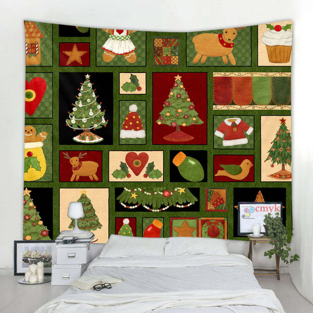 Decorative: Cartoon Christmas Illustration Tapestry Wall Hanging Tapis Cloth adopts a unique design, whether the wall tapestry is used as a bedroom tapestry or a living room tapestry, it can make you feel comfortable and enhance your aesthetics. Your guests will praise your choice